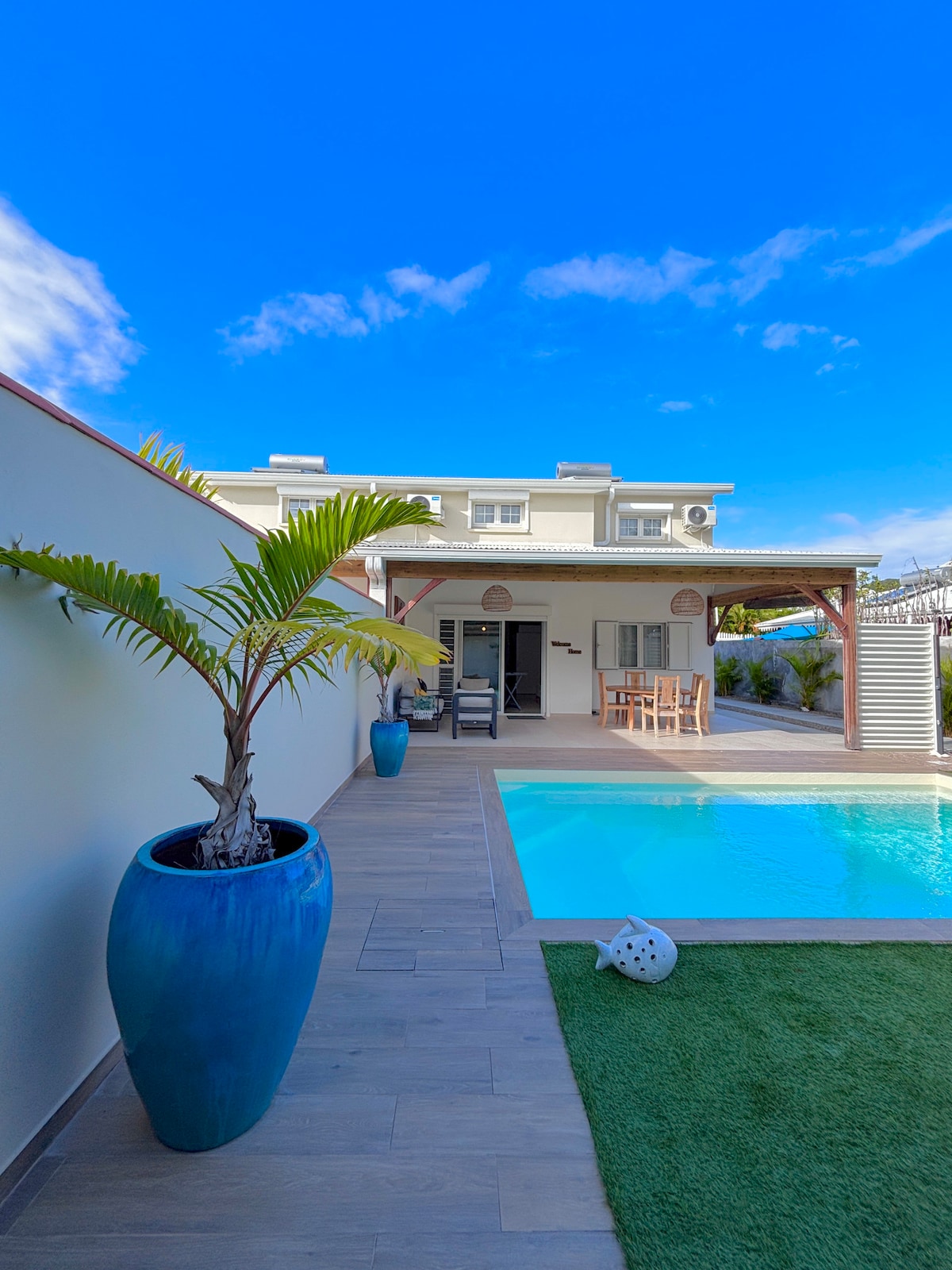 Located near the village of Sainte-Anne, in the South Caribbean of Martinique, in a quiet area, you can easily and quickly access the most beautiful beaches on the island. Breen Lodge is composed of 3 accommodations (T2, T3, and T4) the pool area is shared between them Come and relax with family or friends, thanks to this chic accommodation that can accommodate up to 6 people, and enjoy its private terrace. Looking forward to welcoming you. 🌴☀️
