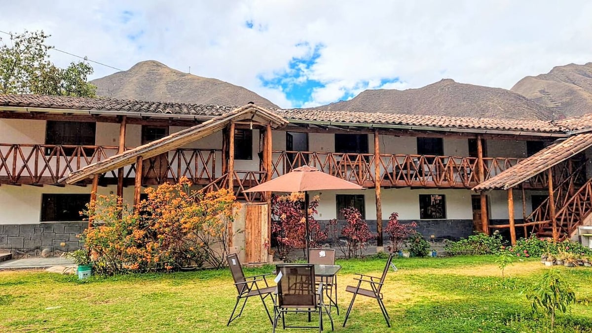 Departamento amplio y cómodo, al pie de las montañas del Valle Sagrado de los Incas, disfrutarás de hermosas vistas desde las habitaciones. A sólo 12 minutos de Las Chullpas. La ubicación permite conocer fácilmente los diferentes atractivos turísticos del Valle de Urubamba. Rodeado de arroyos y una gran diversidad de flores y plantas silvestres.
