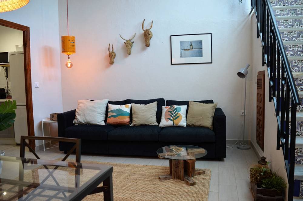 Enjoy your stay in this pretty, centrally located village house in Bedar village, only a short walk to all amenities, tapas bars, art centre, bakery etc etc. The bright , quirky house is all on one level with steps to an outside terrace with fabulous sea views. There are two double bedrooms , one with a Juliet balcony. The kitchen is modern & newly fitted and the living room also has a dining area. Also parking is not a problem with a parking space for this house only!. A fabulous property.
