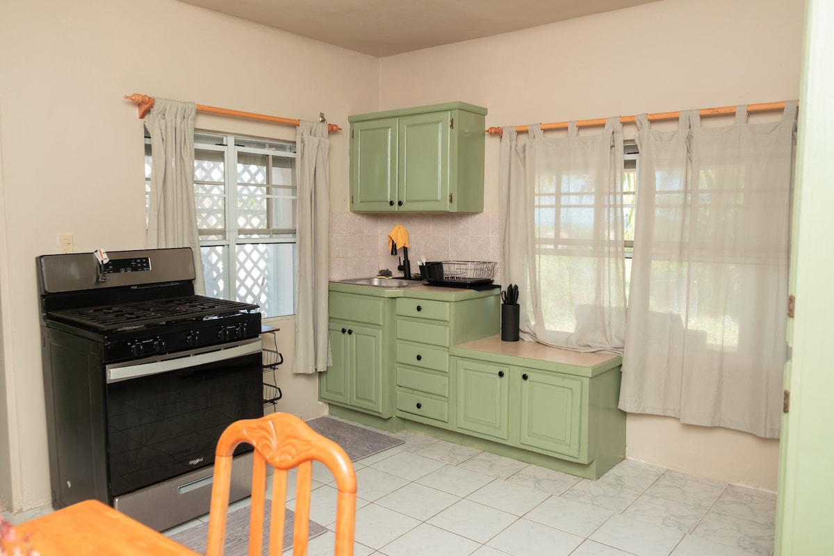 Unwind at this peaceful oasis. This clean, spacious, modern, studio apartment features a kitchenette, washer/dryer, dedicated garden area with a grill, and keypad entry. Located just 4 minutes from the airport with no air traffic noise, 10 minutes from the closest beach, and 10 minutes from the American University of Antigua. Includes WiFi, and a whole house water filtering system. Perfect for travelers looking for a peaceful, quiet stay that provides convenience and comfort.