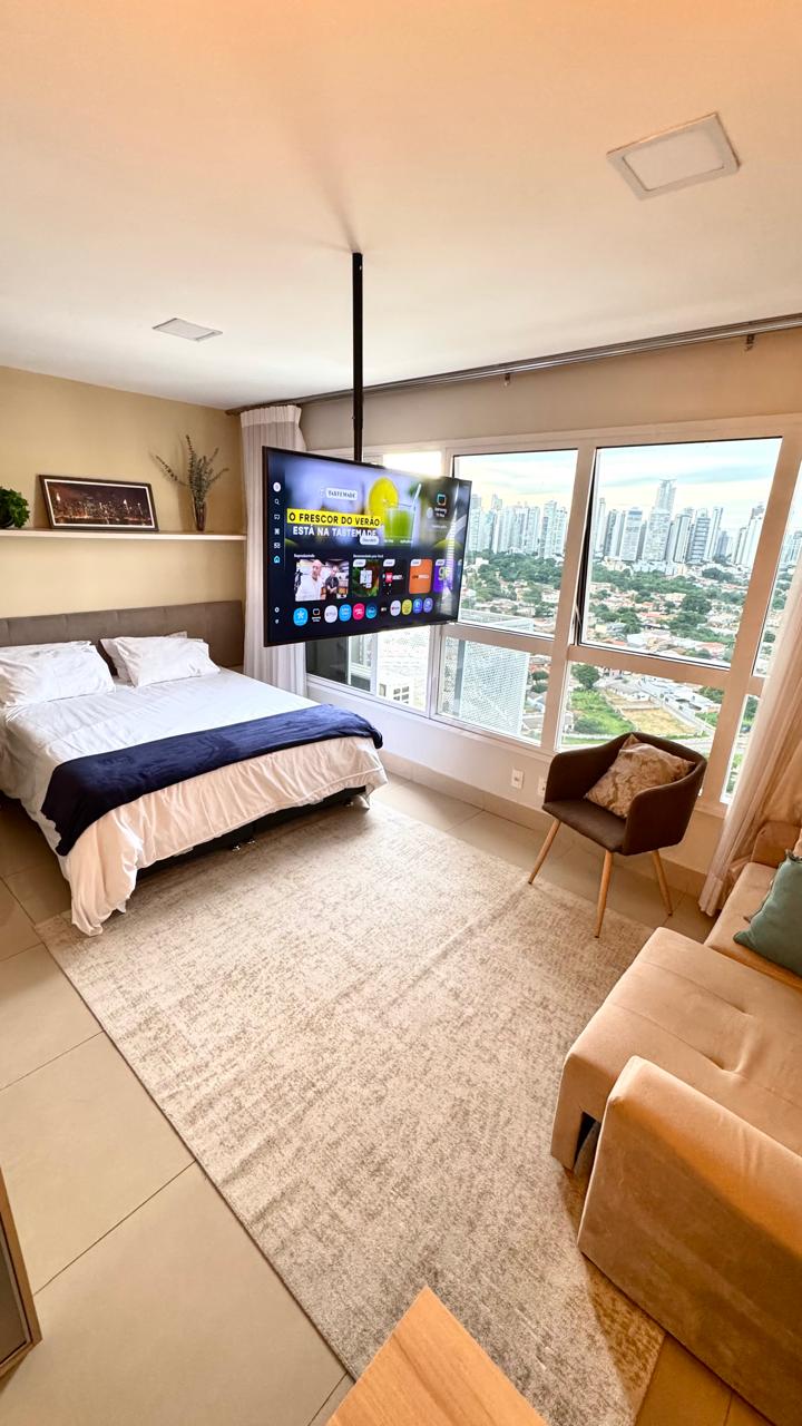 Apartamento único e aconchegante!!! Com 1 quarto, 1 cama Queen, todo mobiliado, excelente localização, com Wi-Fi, 2 Tvs Smart, eletrodomésticos como micro-ondas, cafeteira, filtro com água gelada, ferro de passar, secador de cabelo.. roupas de cama e banho e garagem privativa. Área de lazer completa com piscina aquecida, sauna, jacuzzi, academia, lavanderia, e no mall tem excelentes restaurantes e cafeterias. Ao lado do melhor shopping de Goiás, Flamboyant Shopping.