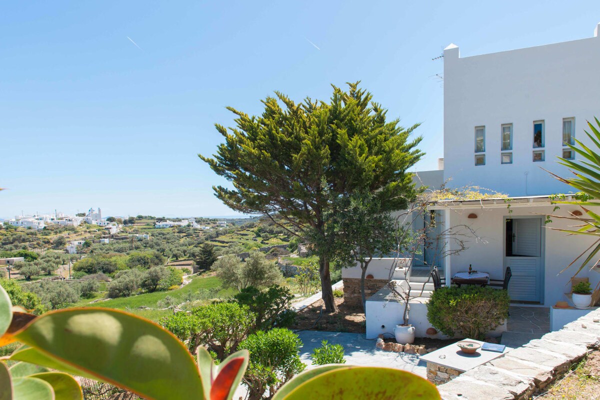 Welcome to relax in our traditional, stone made, calm, stylish cottage. You will enjoy an unforgettable vacation in a countryside house offering panoramic view , sea view, fruit trees, plants and vines in a 1100 m2 garden, only 7-8 mins walking from the centre of the capital Apollonia. Nearest restaurant is about 150 metres away. The couple of owners living in the same 1100 m2 yard, with extensive travel experience in all over the world, will offer you the famous Greek traditional hospitality.