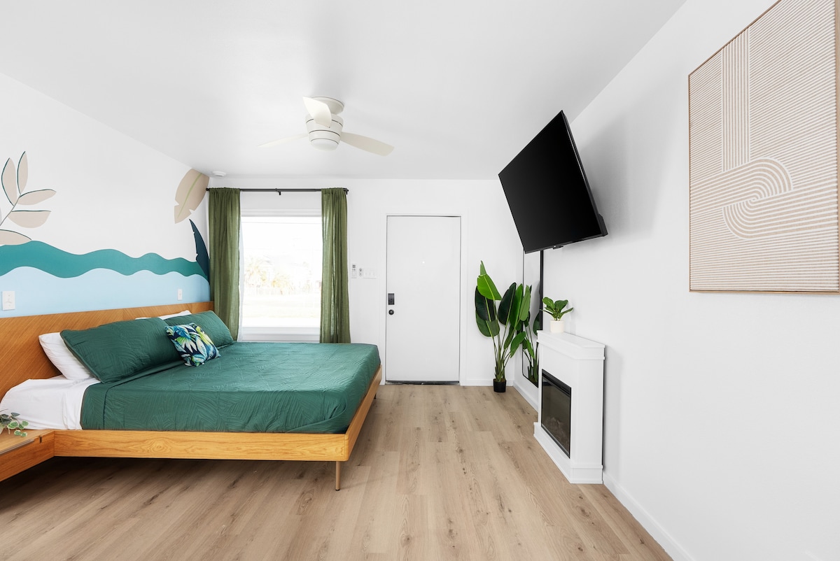 Welcome to your perfect coastal stay at Motel Miya in Rockport ๐ This thoughtfully designed King & Queen Bunk Room is ideal for families, fishing groups, or anyone needing extra sleeping space without sacrificing comfort. The layout features one plush king bed along with a queen-over-queen bunk bed, giving everyone room to relax after a day on the coast. Recently refreshed and rebuilt after Hurricane Harvey, Motel Miya blends a clean, modern feel with a laid-back coastal vibe. Whether you're