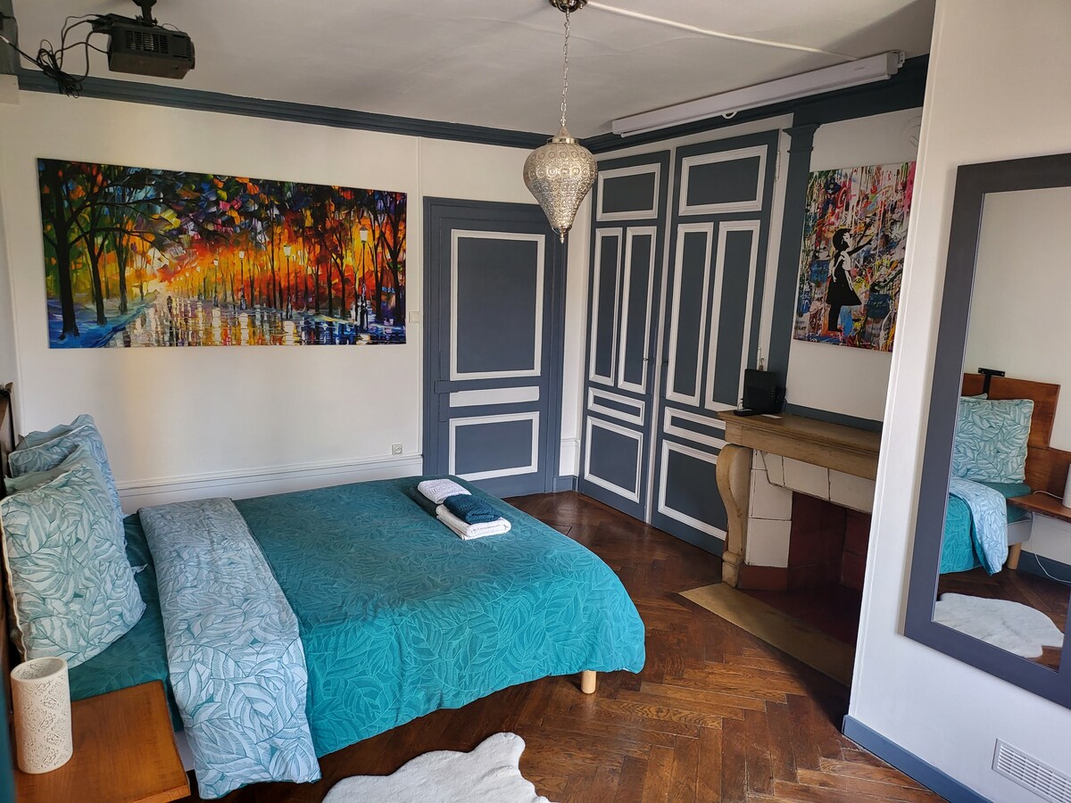 Located in the historic center of Arbois. This former hotel has retained its period character. A spacious and bright room equipped with a video projector. Parking and all amenities nearby, ideally located between the fruit, wine and cheese shops for the biggest foodies. The balcony will offer you stunning views of the first plateaus of the Revermont. Looking forward to welcoming you to our beautiful Jura village.