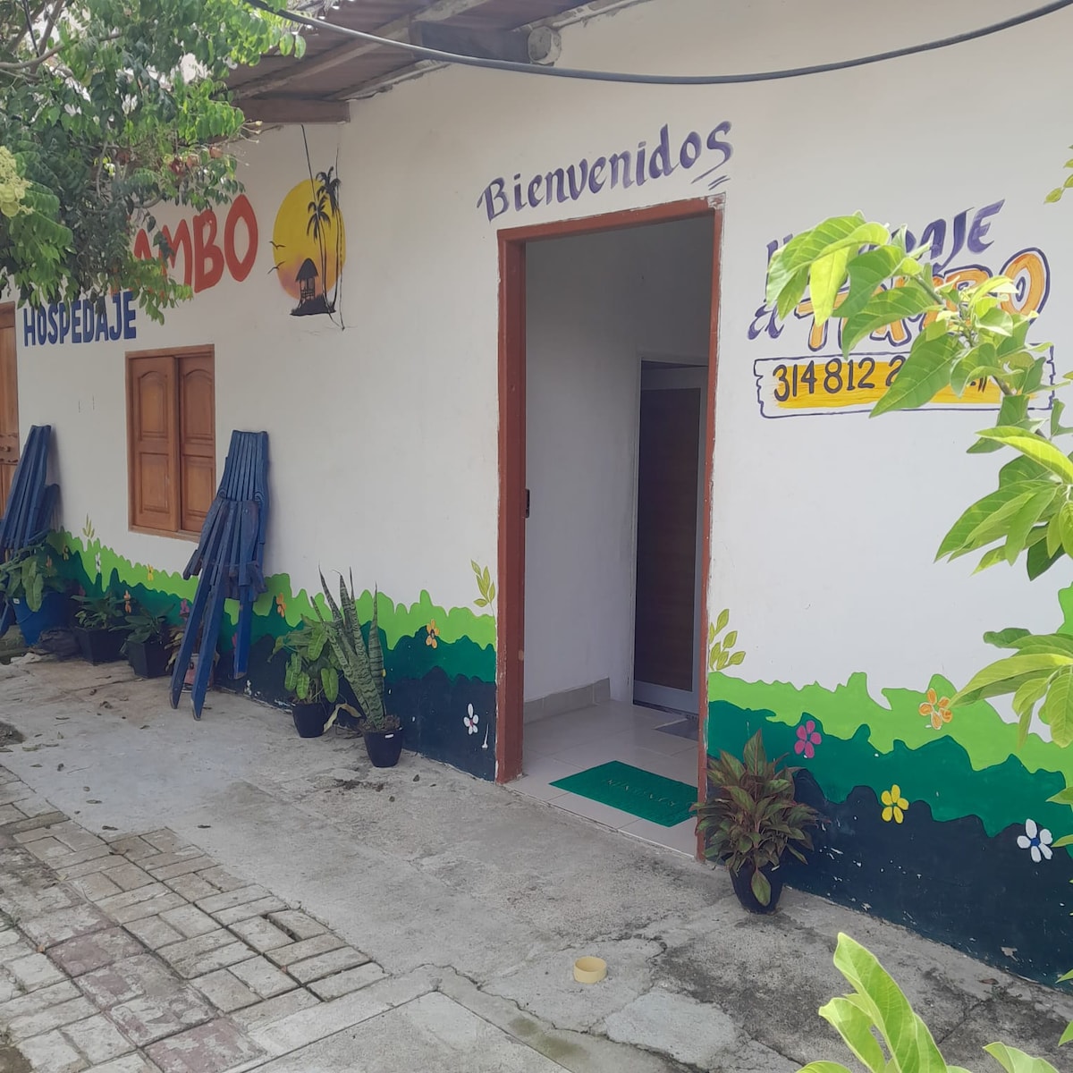 Welcome to Casa Bohíos! ✨ Located in Arboletes, 7 blocks from the beach and 800 m from the mud volcano. Quiet neighborhood with easy access to tuk-tuks or motorcycle taxis. 💧Due to drought, there is water rationing: on weekdays it is cut from 5pm to 5am, on weekends and holidays there is water 24 hours (this information may vary depending on the season). We have a tank and containers to supply water needs in case there is none. The air conditioning is located in the master bedroom