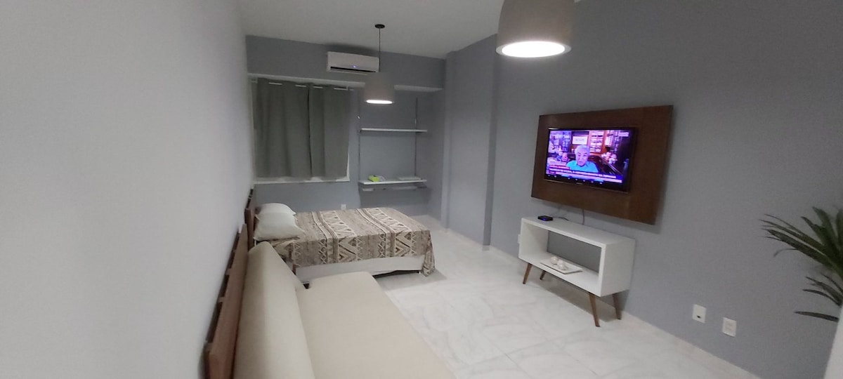 Unique studio with air conditioning and privileged location Few steps from the subway, VLT, Santos Dumont airport, consulates and various tourist attractions Have a wonderful night's sleep in our hotel bed with different pillow options, high and silent floor Excellent for visiting various tourist attractions on foot or by transport such as the Municipal Theater, Lapa, Museum of Tomorrow, Christ the Redeemer and beaches in the south zone or to participating in events and business