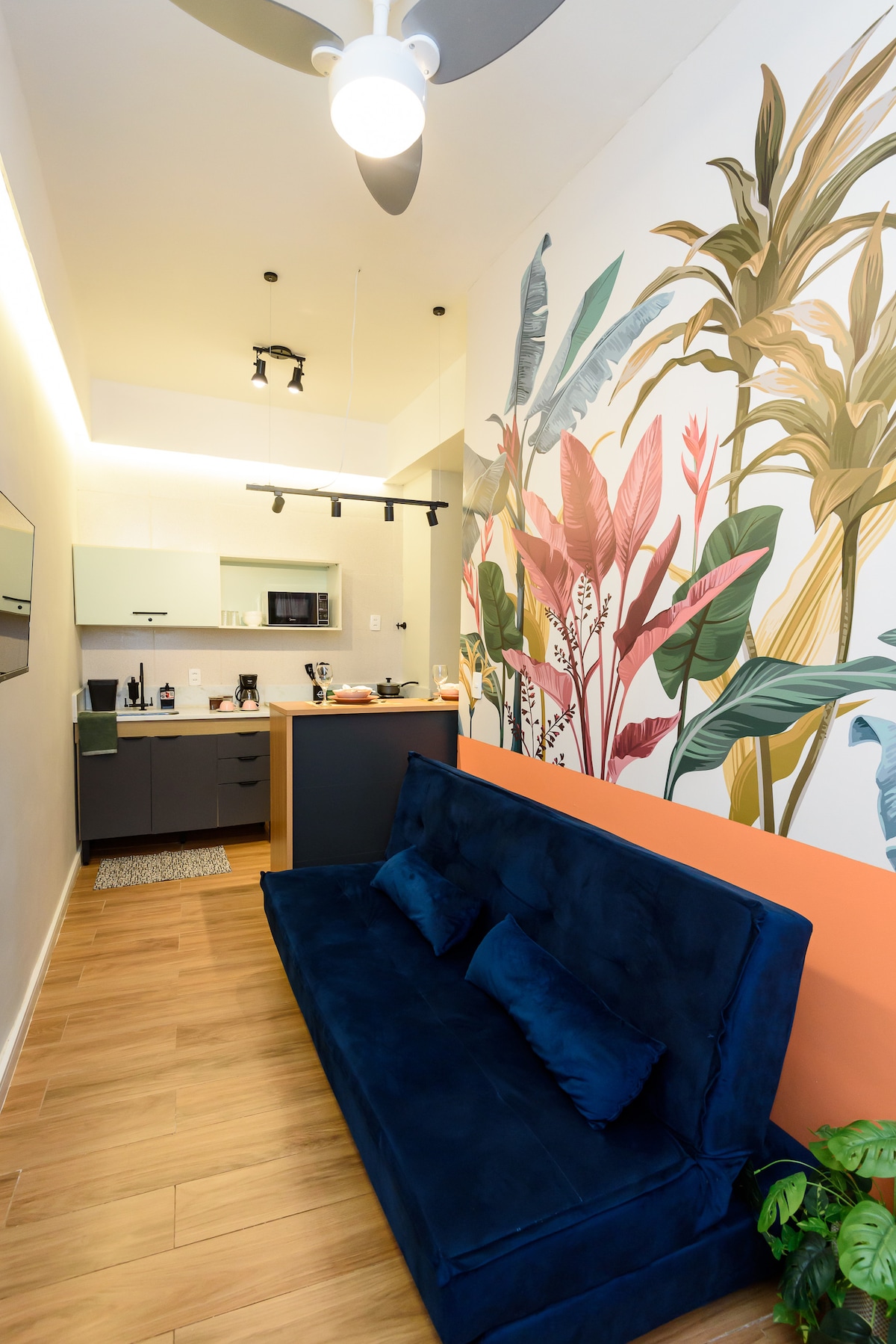 Apartment, loft style, very modern and cozy. It has an independent room with a double bed. Sofa bed in the living room, spacious bathroom, independent toilet. Everything is well planned and decorated. The gourmet area is integrated into the living room (open kitchen), great for interaction between guests. Kitchen with 2-burner electric stove, minibar, microwave, electric oven and coffee maker, etc. Towels and bed linens for guests. Less than 10 minutes to the subway or Aterro do Flamengo and other cultural points.