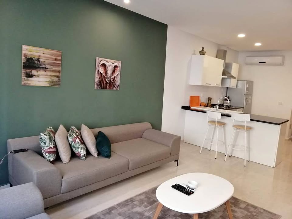 *ONE bedroom 🛌 with king size bed , work space laptop friendly and a dressing * ONE bathroom 🛁 with bath tray, candles, liquid soap, toilet roll and fresh towels * Fully equipped kitchen with breakfast essentials 🍳 , home made Tunisian 🇹🇳 spices to make delicious food 🥘 * Kitchen is opening in a spacious living room with L shape sofa where tou can enjoy watching your favorite movies 🎥 * A big balcony where you can enjoy an afternoon tea 🍵 with a view ( washing machine 🧺 is in the cornes)
