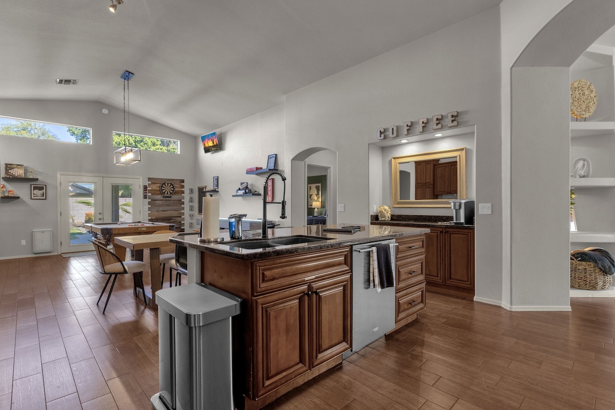 Welcome to this 4 bed 2 bath spacious and modern home located in the community of Tartesso in Buckeye, AZ. It is 15 minutes to any restaurants/stores but there are food trucks daily in the community. • 25 minutes to Palo Verde Generating Station • Modern and stocked kitchen with appliances and a variety of spices available. • Laundry room equipped with detergent • Comfy beds and pillows • Smart TV with Netflix, Disney+ and more • iron/ iron board and steamer available.