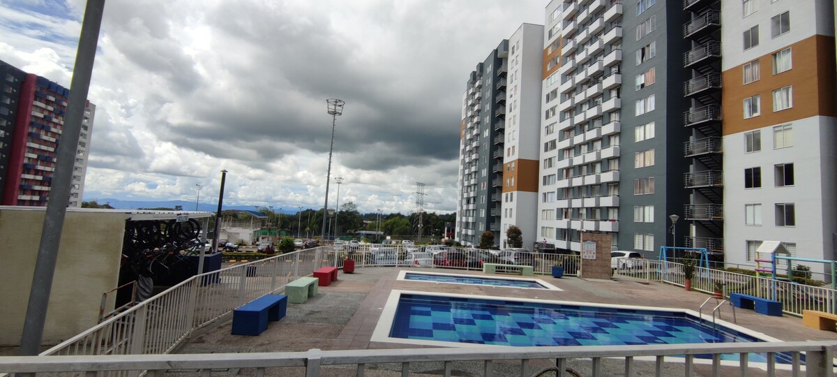 🏡 Modern 6th-floor apartment with 2 bedrooms and 2 bathrooms (one ensuite). 🛏️ Sleeping arrangements: Master bedroom: Double bed + pull-out double bed. Bedroom 2: Double bed + single bed. Living room: Double sofa bed. 🌟 Prime location near Parque del Café, PANACA, Salento, and Filandia. 💎 Pool, jacuzzi, steam room, gym, private parking, and more. ✨ Book now and enjoy the best experience in Quindío!