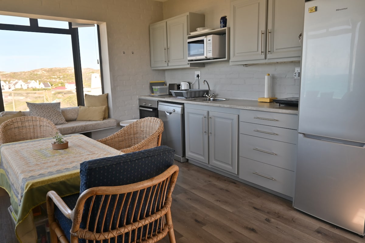 Lovely apartment with private entrance and a magnificent sea views of the longest beach stretching to Arniston. Experience sunrise over the ocean from from the comfort of your bed, or sunset from the deck. 2 bedrooms, one with a Queen size and the other with a single bed. Outdoor deck where you can relax. Well equipped kitchenette, dining area, DSTV and free WIFi Barbecue facilities available Walking distance to the beach, harbor and shops.