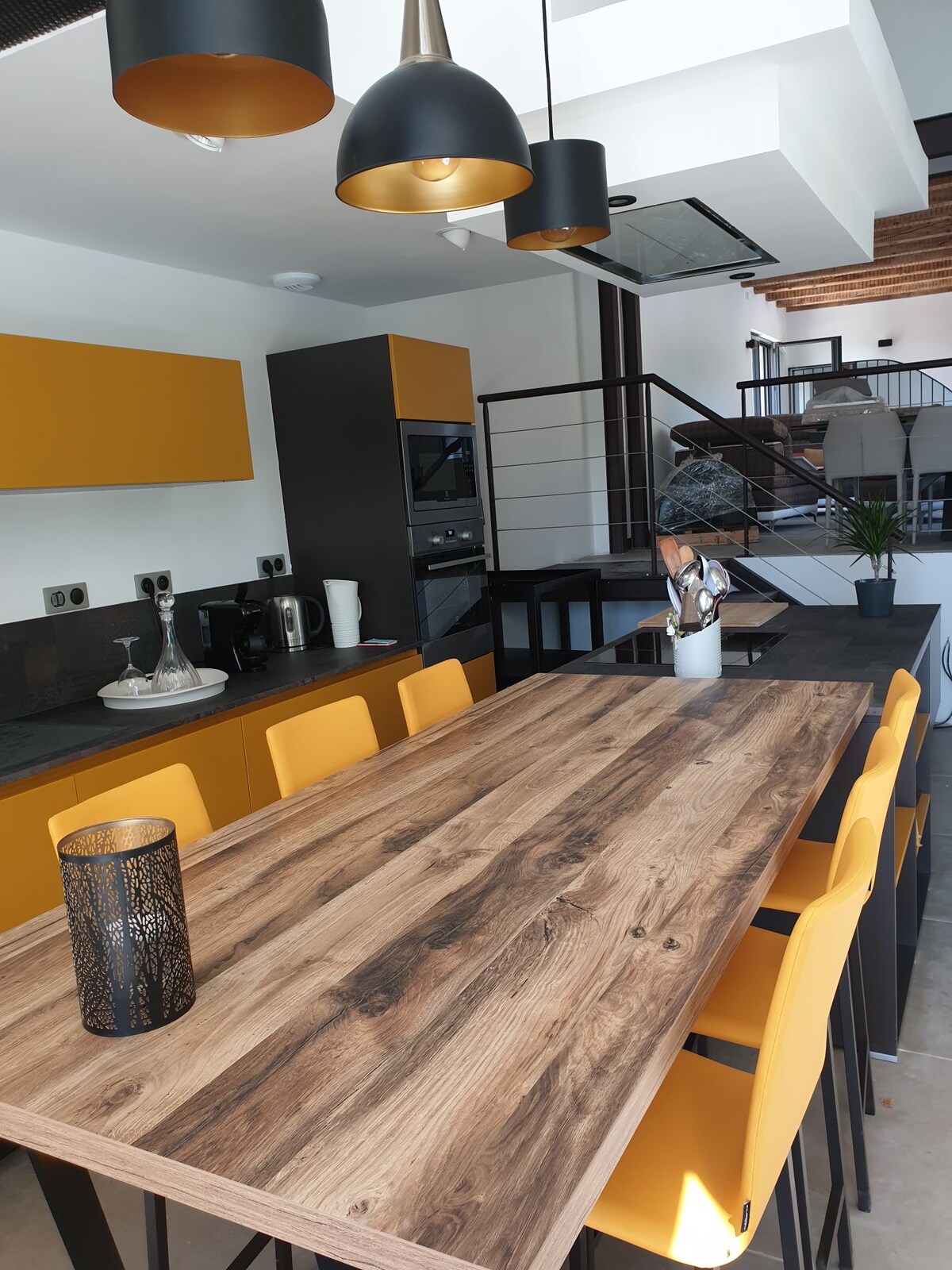 In Drôme Provençale, next to Grignan, between vineyards and lavender, our cottage is the only one on the property. It is located upstairs, for four adults, adjoining the owners' farmhouse. 48 m2 living room, with fully equipped open kitchen, relaxation area with 127 cm TV, air conditioning. 35 m2 master suite with walk-in shower, double sinks, separate toilet, air conditioning. 30 m2 mezzanine. Both beds are 160 X 200. Private terrace with Weber barbecue.
