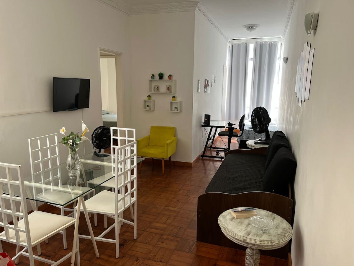 Apartment for 6 people maximum to building regulation, at 3 minutes from Copacabana beach, post 6, with 3 bedrooms, 2 bathrooms, kitchen, air conditioning and central hot water. Partial view of the sea. 4 TV with cable + WIFI and Netflix Apartamento para um máximo de 6 pessoas, de acordo com os regulamentos de construção, a 3 minutos da praia de Copacabana, posto 6, com 3 quartos, 2 banheiros, cozinha, ar condicionado e central de água quente. Sala de estar, sala de jantar e varanda. 4 TV + WIFI