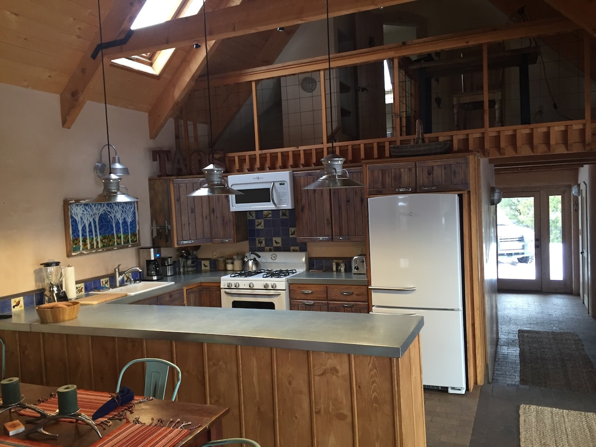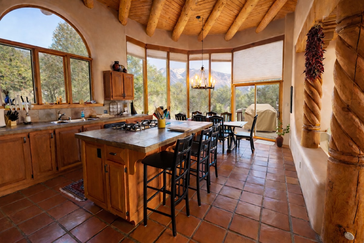 Off the Rim Road in Arroyo Seco - down a quiet country lane is Stella Luna. With dramatic views of Lobo Peak & Taos Mountain off the back deck and El Pedernal off the front -a secluded outdoor hot tub, a kiva fireplace & an out door grill - this is the ideal place to unwind. 15 min to TSV & 15 min to the Plaza. We will entertain long term visitors during the pandemic - please ask.