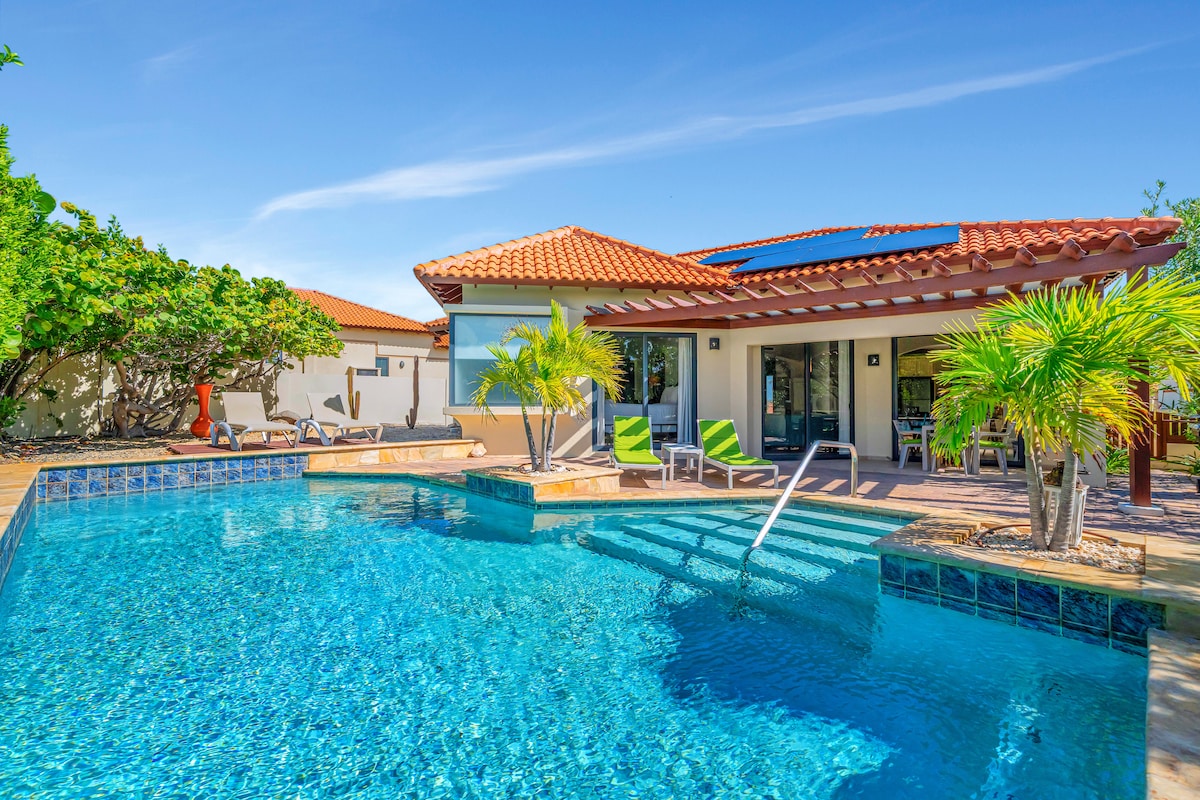 Experience Aruba from the comfort of this modern, comfortable home with a 5-minute walk to some of the world's greatest beaches. The house is in a very quiet neighborhood with a PRIVATE backyard. Enjoy your own sky-blue pool, bar-b-que, tiki bar, and sitting areas. An excellent choice for families who want to live like the island locals and enjoy nearby restaurants, night clubs, resorts, malls, and beaches.