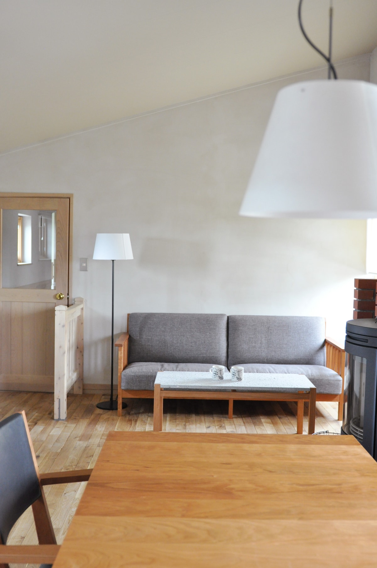 [Biei's house with travel and stories] Our place is a high-quality accommodation in the center of Biei, with the memory of "things" and "people" encountered by the owner from all over the world. There are stories in all of the space, including a single board table in Nala, its own leather lampshades, Canadian fishing boat lights, and Oregon wood carvings.Especially the Japanese-style fusuma and the trout paintings on the walls are works by Tomoyuki Takeuchi, who traveled through North America, and now lives in Chitose.The line carefully painted with a ballpoint pen is quiet and warm, and it strikes many people's hearts. It can accommodate up to 9 people, and you can enjoy movies and conversation in the lounge with an L-shaped sofa.It is also a great base for sightseeing, such as blue ponds, Biei hills, hot springs, and cafes. Immerse yourself in the afterglow of your trip, quiet time to read, enjoy music, and talk.It's a place where casual time turns into a special memory. Welcome to my house.