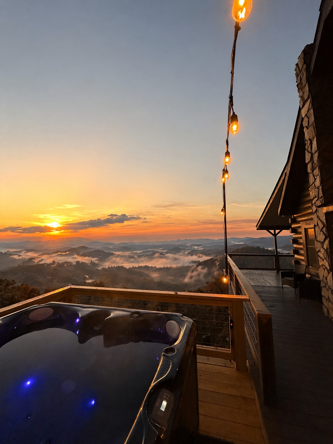 LUX mountain-top hot tub, firepit & sunrise VIEWS