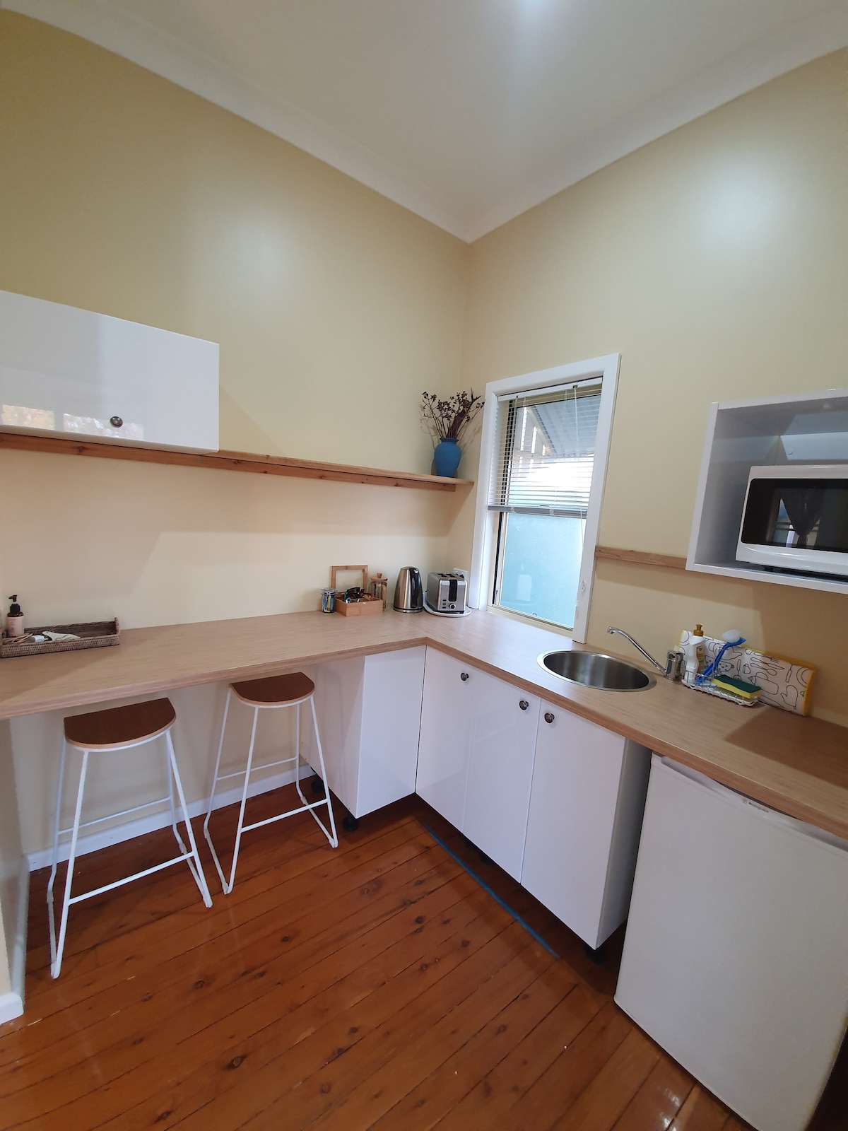 Enjoy the convenience of our secure, self-contained and spacious unit on a one acre block in the middle of town. A five-minute stroll will get you into town to find cafes and shops and then you can return to the peace and quiet of the bird filled backyard. The pool area can be used in summer and the deck is warm on winter mornings. We live in the adjacent house and are happy to help with whatever you need.