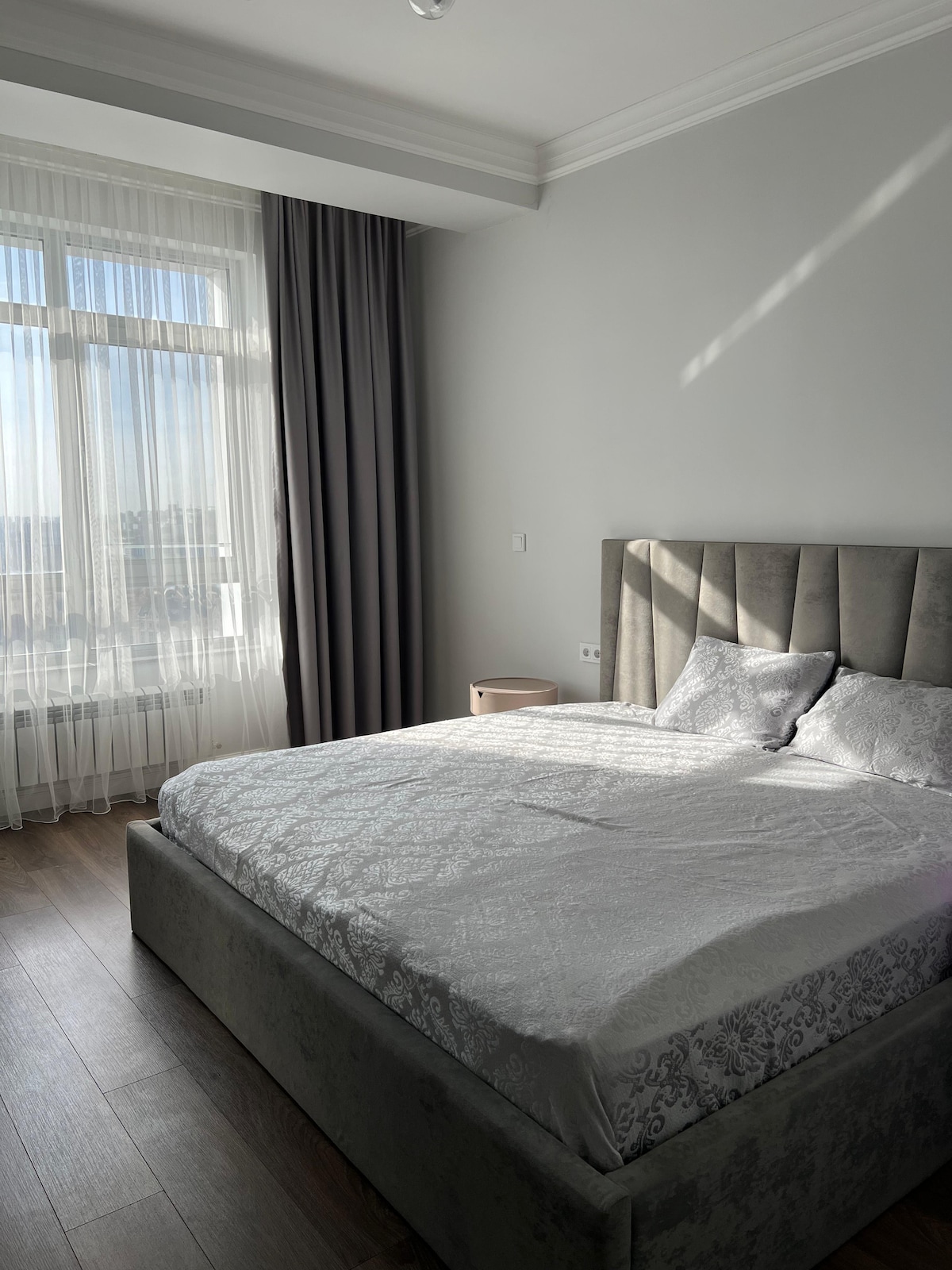 Apartment in a new and modern residential complex. A modern design solution, a thoughtful and cozy filling combined with a beautiful view of a bright and beautiful city, will allow you to indulge in an unforgettable experience regardless of the purpose of the visit. Functional kitchen, comfortable dining table, soft sofa, bed with orthopedic mattress
