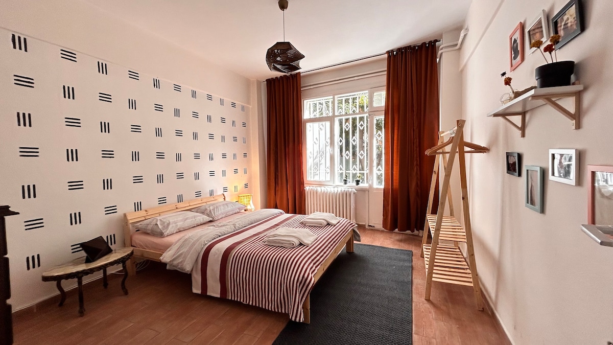 Enjoy a stylish experience at this centrally located pet friendly place. The apartment is in a safe and peaceful area. You can enjoy the cinema with smart tv supported projection. There is central heating&ac. Lovely,sunny, spacious, bright, large apartment. Across the building, there is a park surrounded by greenery where you can do sports. There is private parking. Bağdat Street is within walking distance. 5 minutes walking distance to public transport, stops, pharmacies, hospitals and cafes.