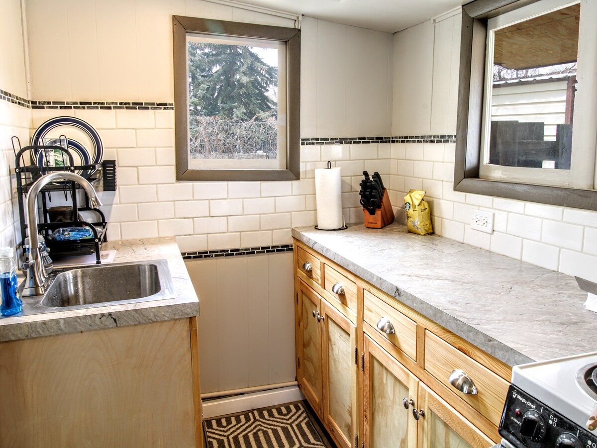 Historic homestead - Walk to Mainstreet, City Park, community center, and river walk. Base camp to your Sinks Canyon and the Wind River mountain excursions. 1 queen bed and an 82" non-pullout sofa will sleep up to 3 adults. This little home was one of the earlier settlements established here in Lander, so keep in mind that it is no spring chicken. We have worked diligently to provide a fresh and modern experience, while maintaining as much character as we could. We hope you enjoy its charm!
