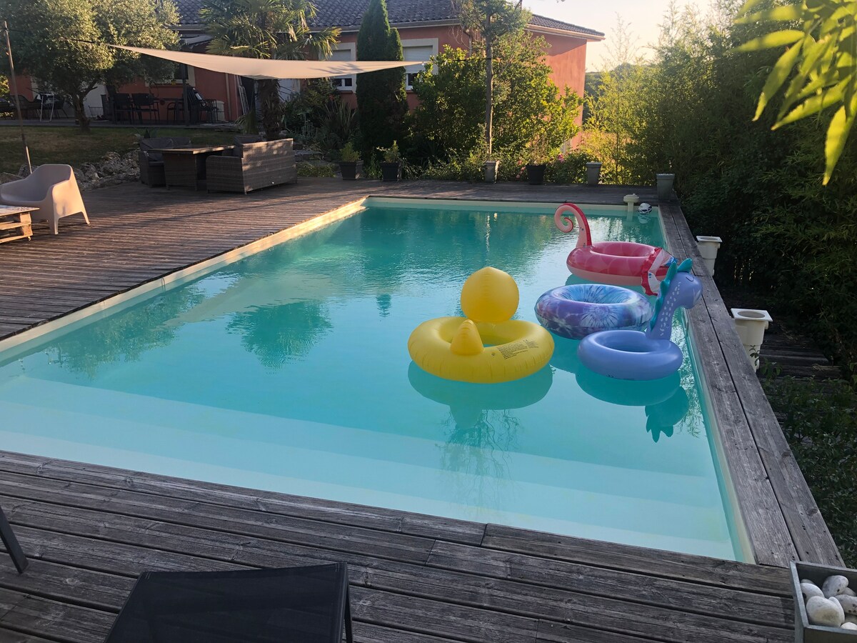 A quiet moment at Villa Ô Bois with game room – Billiards & Foosball – Chill area – Garden and forest in front of the house – Walking trails 3 bedrooms with 3 large 160 x 200 beds and 2 bathrooms - Master bedroom and private bathroom. Fiber Optic Wi-Fi - Smart TV - Fully-equipped open kitchen: oven - microwave - dishwasher - washing machine. Free parking 2 minutes from the A64 highway 5 minutes from Tarbes. 20 minutes from Lourdes 50 minutes from the mountain 1.5 hrs. from the sea