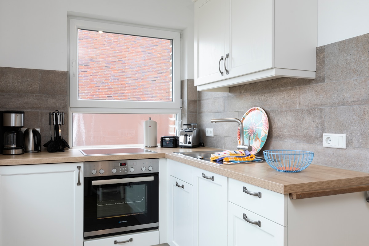 Bright, cozy and maritime 2-room apartment, 36sqm, with balcony, ground floor, Good facilities incl. WLAN Internet, Alexa and parking. Swimming pool and sauna use possible during opening hours. Fitness studio directly at the house. Kitchen with window, oven, microwave+grill, fridge with freezer, coffee maker, kettle and toaster. In this special accommodation all important points of contact are very close - so planning your stay will be very easy.