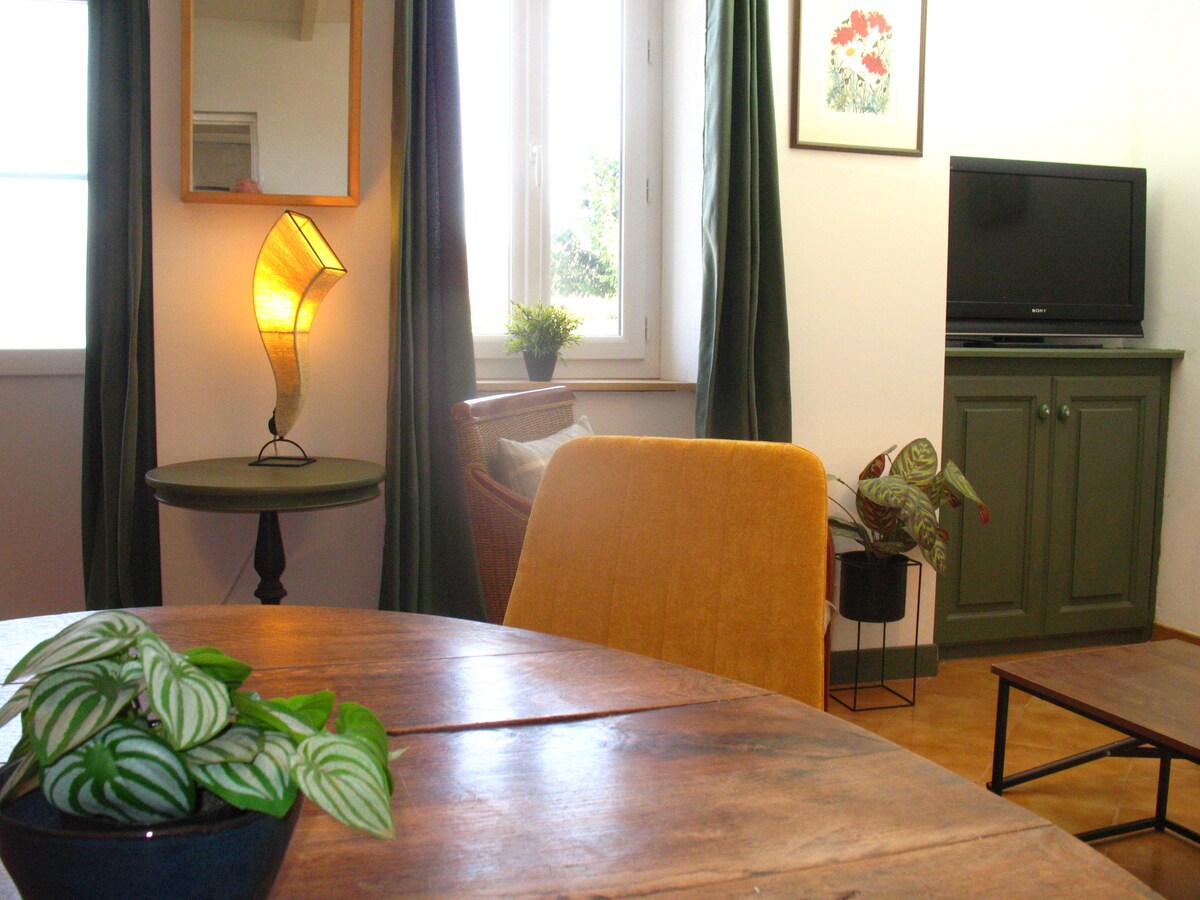 Take it easy at this unique and tranquil getaway. 3kms from the pretty médiéval town of Pleaux with all it's commerces. The appartement is fully self contained and offers wonderful views across the surrounding countryside towards Puy Mary and the Cantal mountains. It is comfortably furnished in a vintage style and offers a spacious salon, bedroom with ensuite bathroom, kitchenette, private terrace and use of the fabulous 11mx4m swimming pool (open June to September) There is private parking.