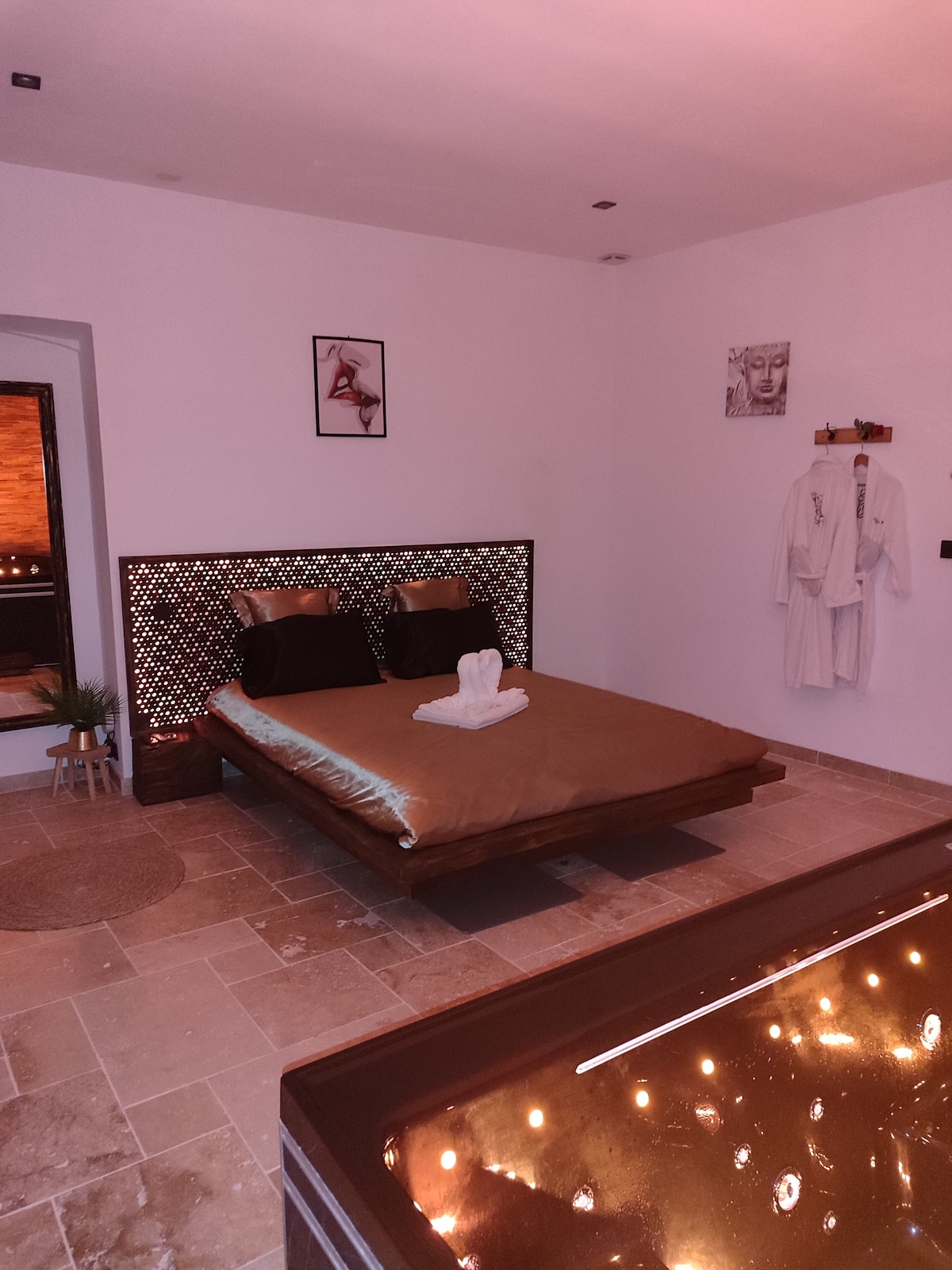 Romantic suite with spa, hammam & zen atmosphere A haven just for you… Zen atmosphere, soft lighting, private spa & steam room to awaken your senses. Let yourself be amazed by this place designed for love and relaxation, with all modern comforts and a cozy, private outdoor area. Close to Marseille and Cassis Breakfast is optional. For a romantic getaway, a wellness evening, or a weekend, please don’t hesitate to contact me.