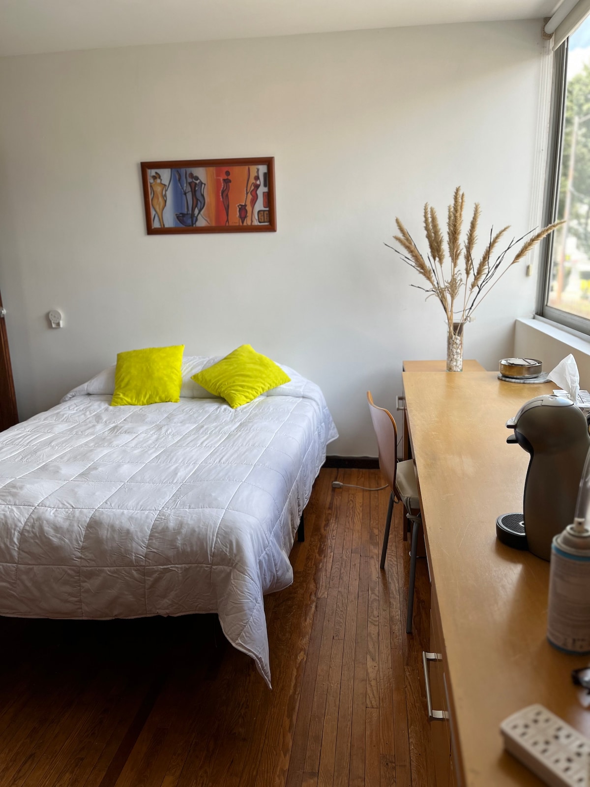 A small apartment ideal for two people, with everything you need for long or short stays. It has a double bed, equipped kitchen, smart TVs, and Wi-Fi. Located south of Mexico City, in a quiet neighborhood, with parks, a market and supermarkets near the apartment; easy to access as it is connected by several main avenues and public transport on the corner.