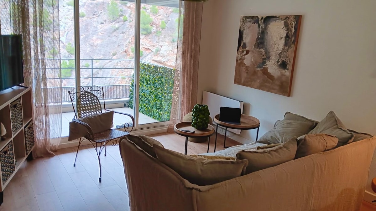 Large air-conditioned apartment on the heights of Lodève with superb views of the surrounding nature. Access to the house's pool. 45 minutes from the beaches and Montpellier. 6 minutes from the highway (A75). 12 minutes to Lac du Salagou. The apartment can accommodate 2 to 6 people and has a living/dining area, a large private terrace and a laundry area. The apartment is equipped with Wi-Fi and air conditioning.