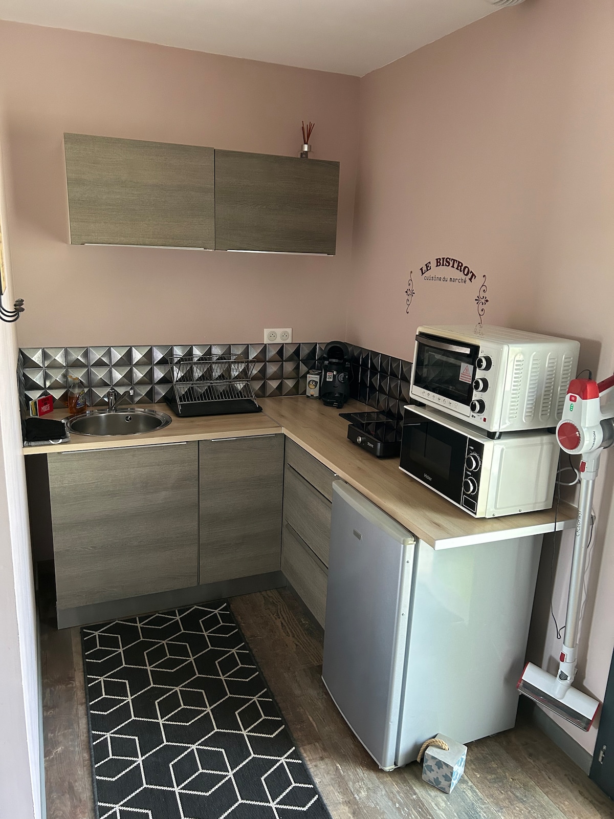 In a very quiet and family area, studio of 18m2 with a convertible sofa in 140, a kitchen and a bathroom with toilet. Private terrace and parking space in front of the unit. Located in Albi in a new house, the city center and its episcopal city are within a 5-minute drive. Possibility to get there by city bus (stop 100 meters from the studio). You will also find a butcher shop, bakery and a commercial hypercenter less than 2 minutes away.