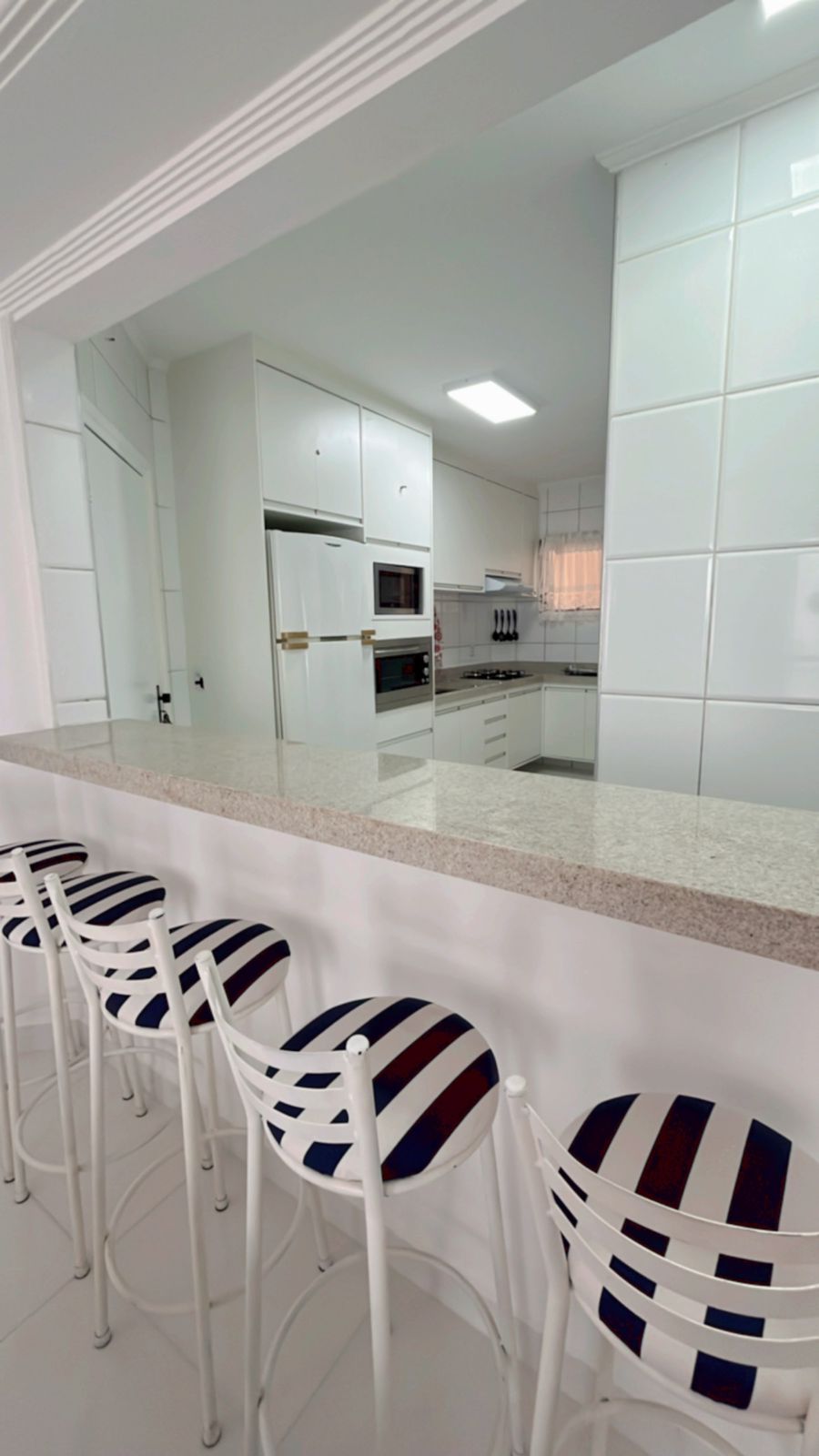 Beautiful apartment with 2 bedrooms (1 en-suite), air-conditioning in each bedroom, TV in the living room and en-suite; Wi-Fi, full kitchen; washer and dryer. All rooms in the apartment have a wide view of the sea (living room, laundry room, kitchen and the two bedrooms). 110 and 220 energy; Building has swimming pools, saunas (dry and wet), Jacuzzi, game room, toy library, playground, fitness center, beach service (chairs and umbrella), and simple daily cleaning in the apartment, already included. 1 parking space.