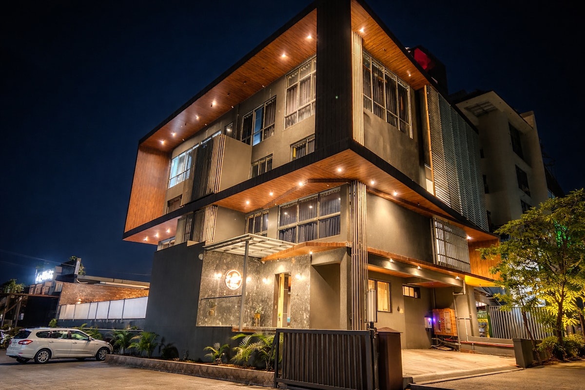 Experience refined luxury in this modern private pool villa, where contemporary architecture blends seamlessly with nature. This exclusive 3BHK near Igatpuri 50 mins from Nashik and 3.5 hrs from Mumbai comfortably sleeps 6–9 guests. Enjoy a private pool, indoor & outdoor games, an amphitheatre for movie nights, a fully equipped kitchen, on-site chef (extra), and a pet-friendly setup, perfect for family getaways and celebrations.