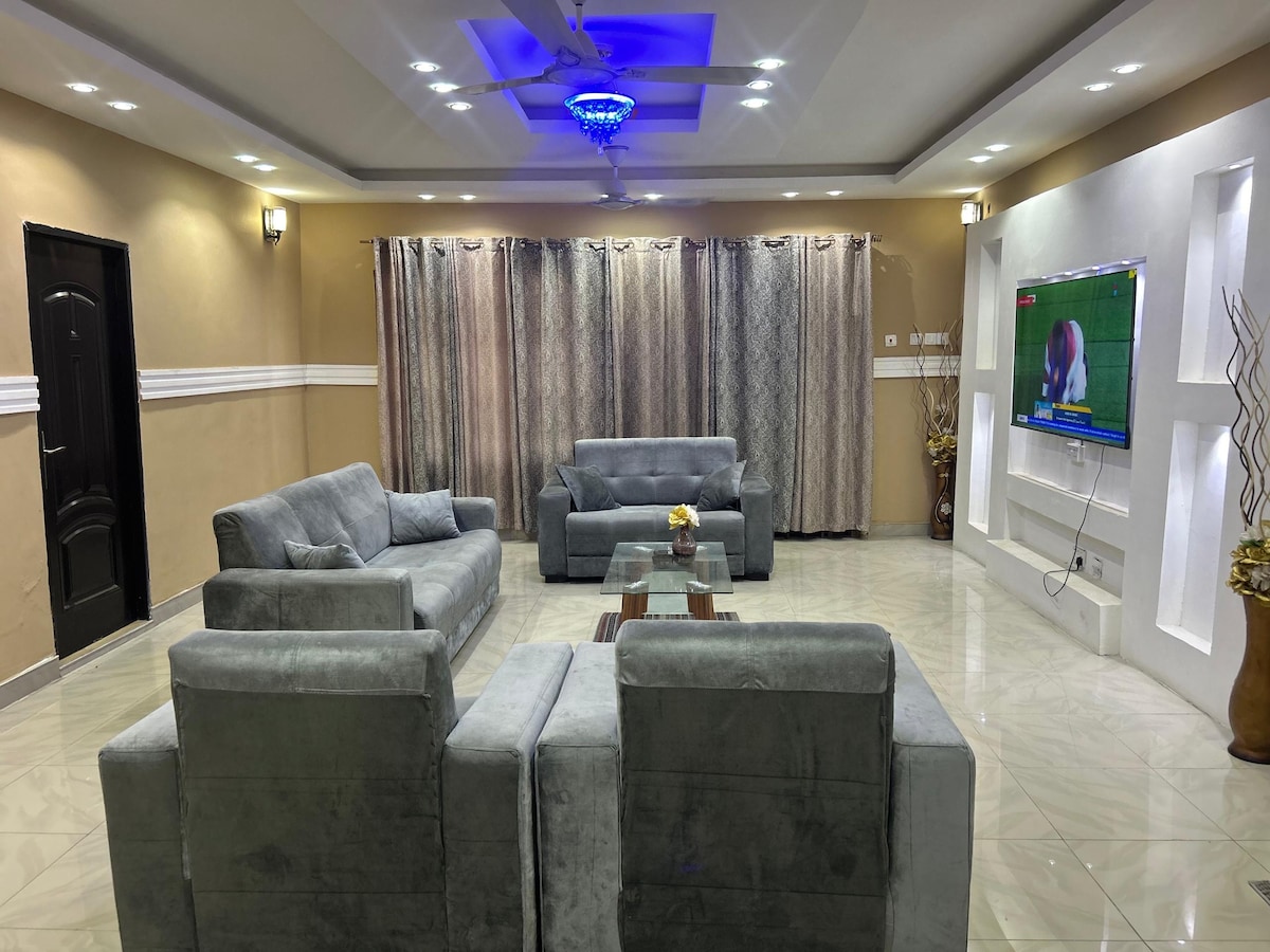 Enjoy an enriching experience in this luxurious home@Kasoa perfect for your family and groups. House fully fitted with ACs,functional kitchen,super comfy beds,cozy couch,security,unlimited internet,Dstv,Netflix and cozy pergola for your outdoor sitting. 25 mins drive to the beautiful beaches and 45 mins drive to airport without traffic. Kick back and relax in this calm ,serene stylish space.