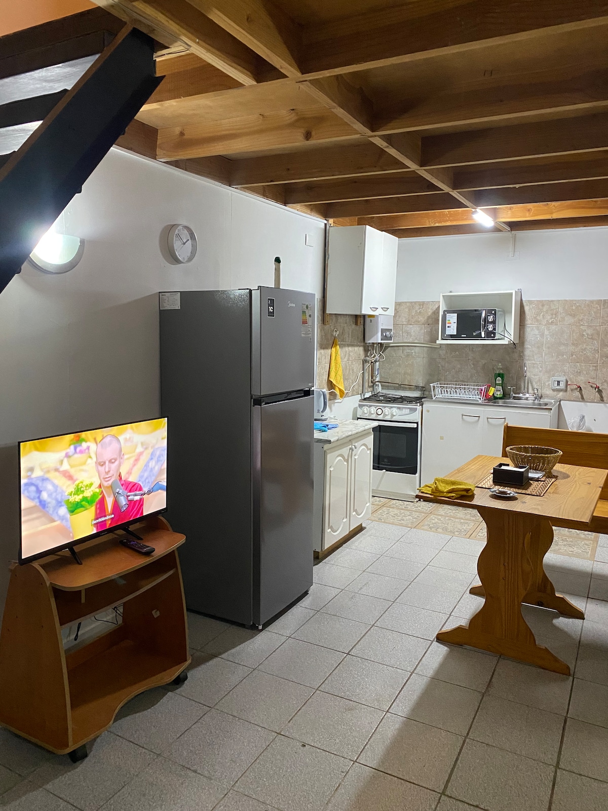 This unified space has everything in one environment, its beds are comfortable, all its elements are made of native wood and its shoe box is made of wood with agate stone from Puerto Guadal Beach. Its bathroom is private, the kitchen is fully stocked with a minibar and is part of the space.