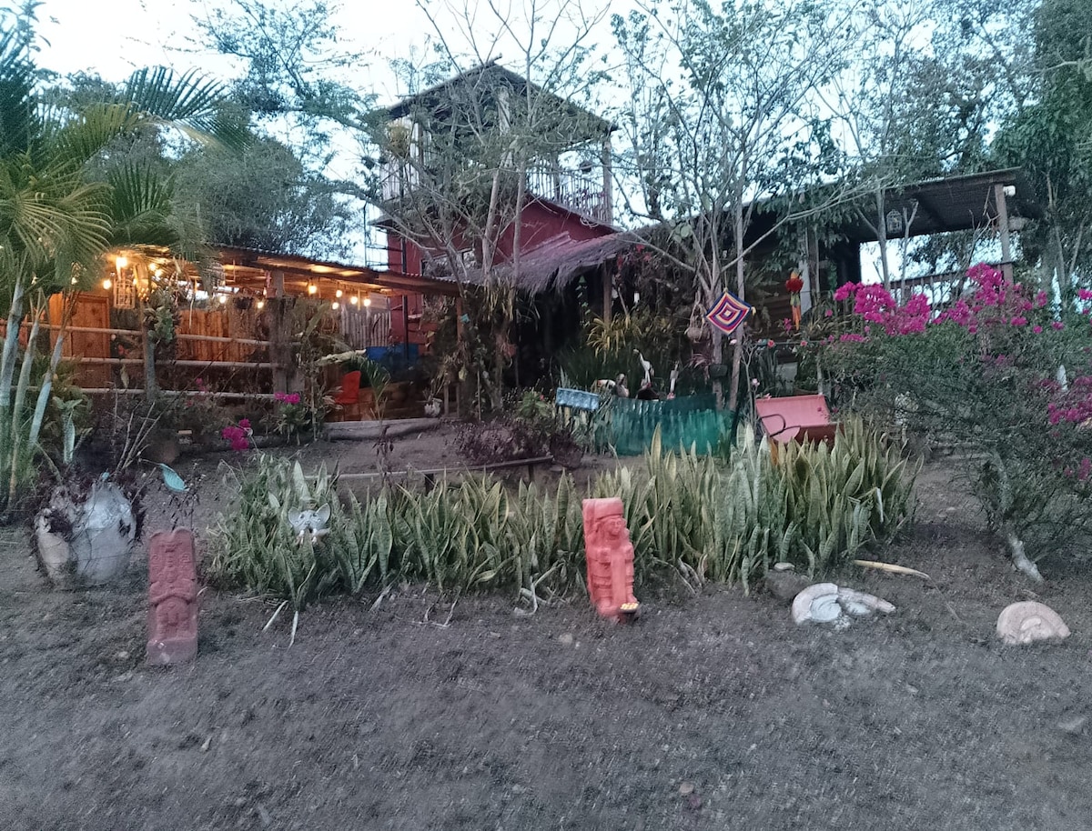 Cozy cabin overlooking one of the pyramids listed as one of the largest in America: the one located in the archaeological zone of Toniná. This space is ideal for disconnecting for a few days, social events or vacationing in the area. We are 20 minutes from Ocosingo by car and just 900m from the archaeological zone. Surrounded by nothing but the area's flora and fauna. Let yourself be enchanted by rural life and local services