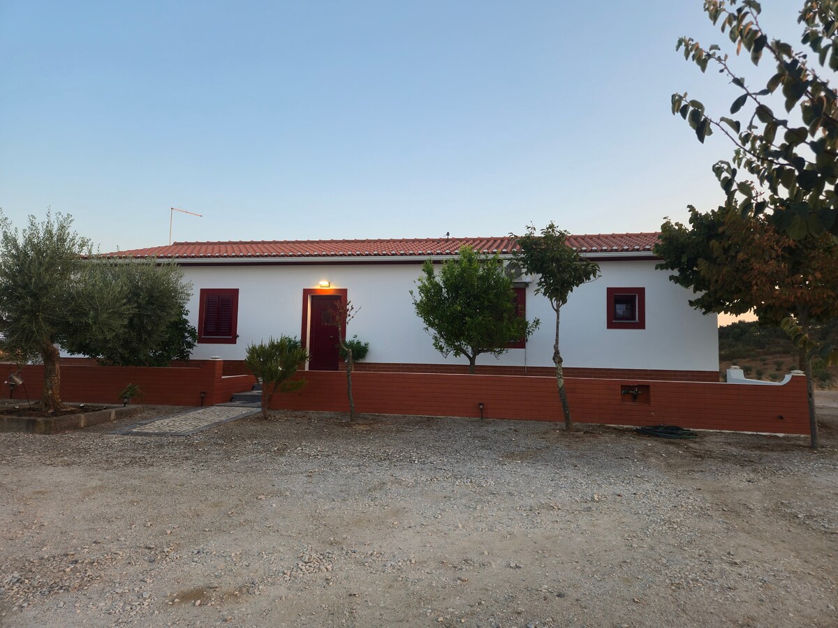 Bem -vindo ao nosso recanto, uma quinta típica alentejana rodeada por um vasto olival, com piscina privada, alpendre e zona de BBQ. A casa é espaçosa, cheia de luz natural e tem 4 quartos confortáveis. Com privacidade total e sem vizinhos, é o refúgio perfeito para descansar. A poucos minutos de Reguengos de Monsaraz, perto do Alqueva, das experiências de enoturismo (Esporão, Adega das Flores, etc) e de experiências únicas como o Dark Sky. Ideal para famílias, casais ou amigos.