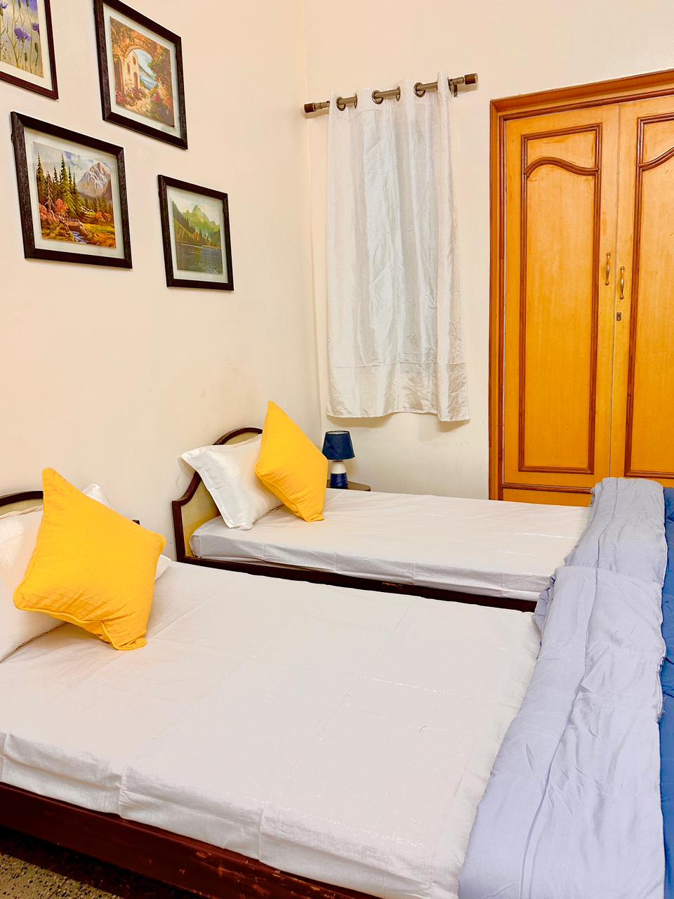 Ours is heritage home, which gives you homely feeling. It is surrounded by lush green trees creating perfect blend of nature, care and timeless charm. The entire place is peaceful and welcoming. Bedrooms of 110 sq ft each gives you a cozy & comfortable feeling. Big living room, kitchen and enclosed terrace makes the whole house spacious & graceful. So come and relax with the whole family. The warmth and comfort can be felt the moment you step in. This place is also pet friendly.