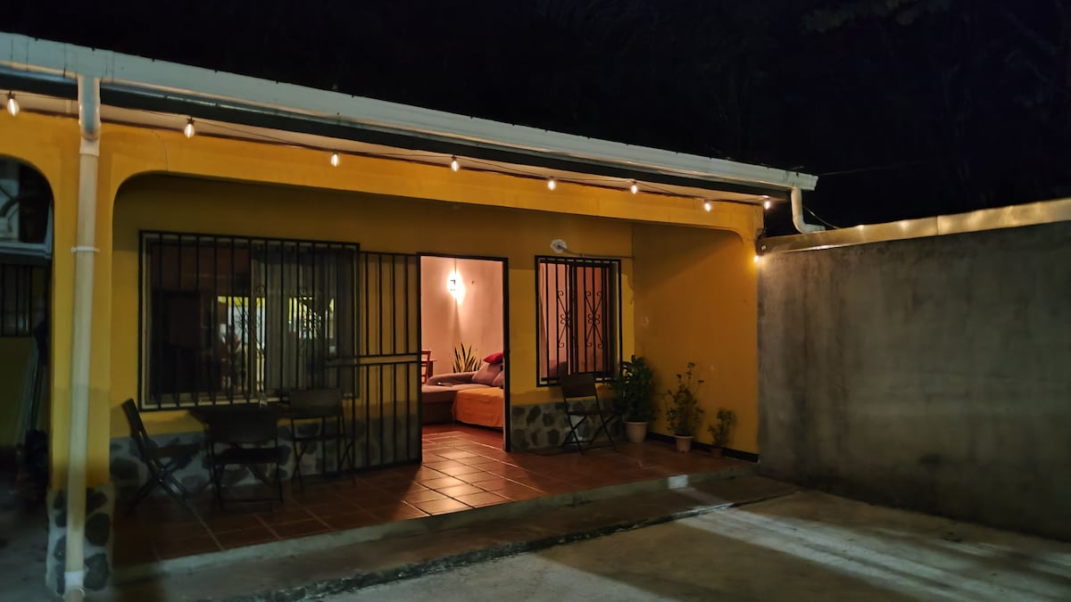 Equipped house 20 min from Tenorio Volcano Río Celeste Park and 1 hour and 15 min from Int. Airport. Liberia LIR. 100 MG fiber optic WiFi, 3 bedrooms, living room, full kitchen, desk, laundry room, double bed and 3 single beds, sofa bed, full bathroom, shower with hot water, drinking water, patio/garden, parking for 2 cars, away from the noise of the city, quiet, safe neighborhood. 2 min to trails, rivers, waterfalls. For families, couples and groups. Close to restaurants, banks, shops