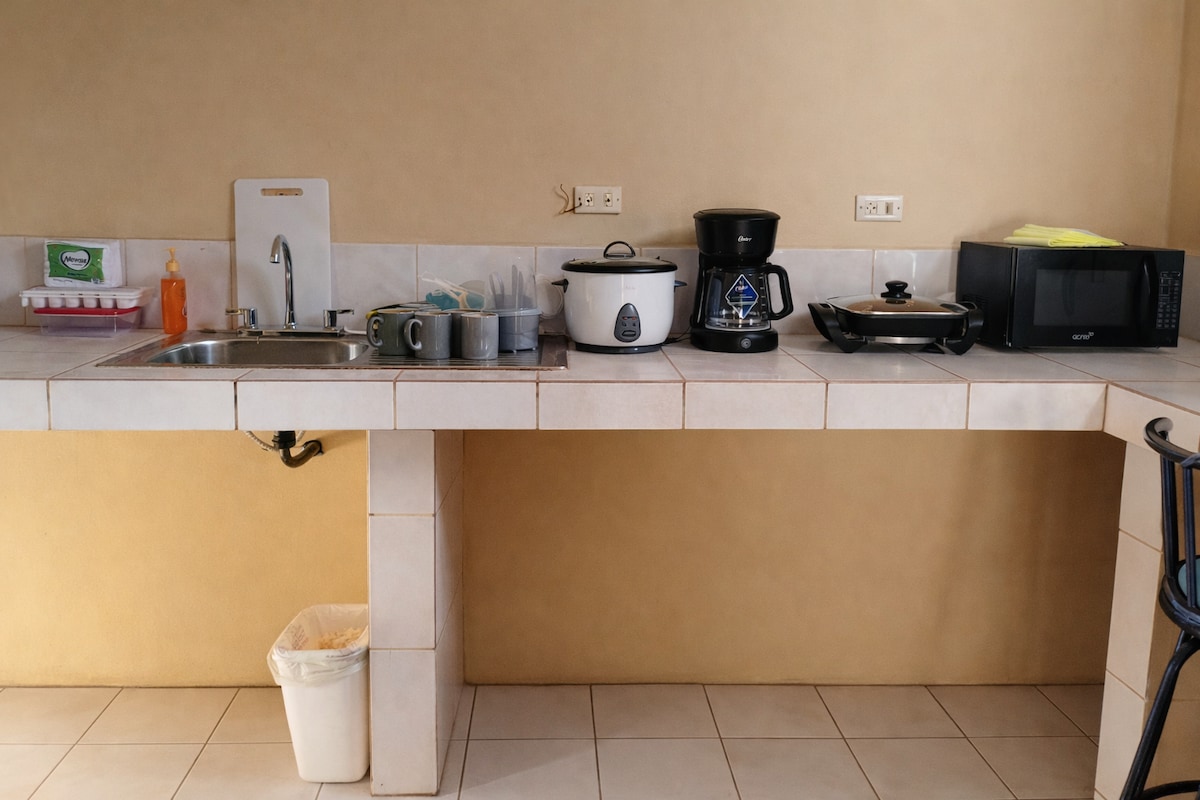Keep it simple at this peaceful and centrally-located apartment in Liberia. Close to the airport, walking distance to the stadium and Central Park. Corner market is steps away, wonderful neighborhood with a cobble stone street. Just down the road from the national historic site Ermita de La Agonía, Liberia’s first church. Built in 1866, this building is one of the oldest in Liberia if not all of Guanacaste. Great location for day trips to Monteverde and La Fortuna, and 30 minutes from the beach!