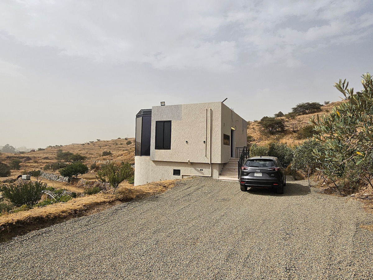 Relax and settle in this suite, which consists of two bedrooms with private bathrooms for each room and an open hall with a hotel European design kitchen It can accommodate only 4 people Families Self check-in with your own PIN Fully equipped with audio in all rooms And a full panoramic view. Very classy VIP furniture There is a furnished kitchen, automatic washing machine, microwave, iron and gas It is completely independent The location is in Bargadan Center, Al Baha City, in the middle of the parks, this is a rural residence.
