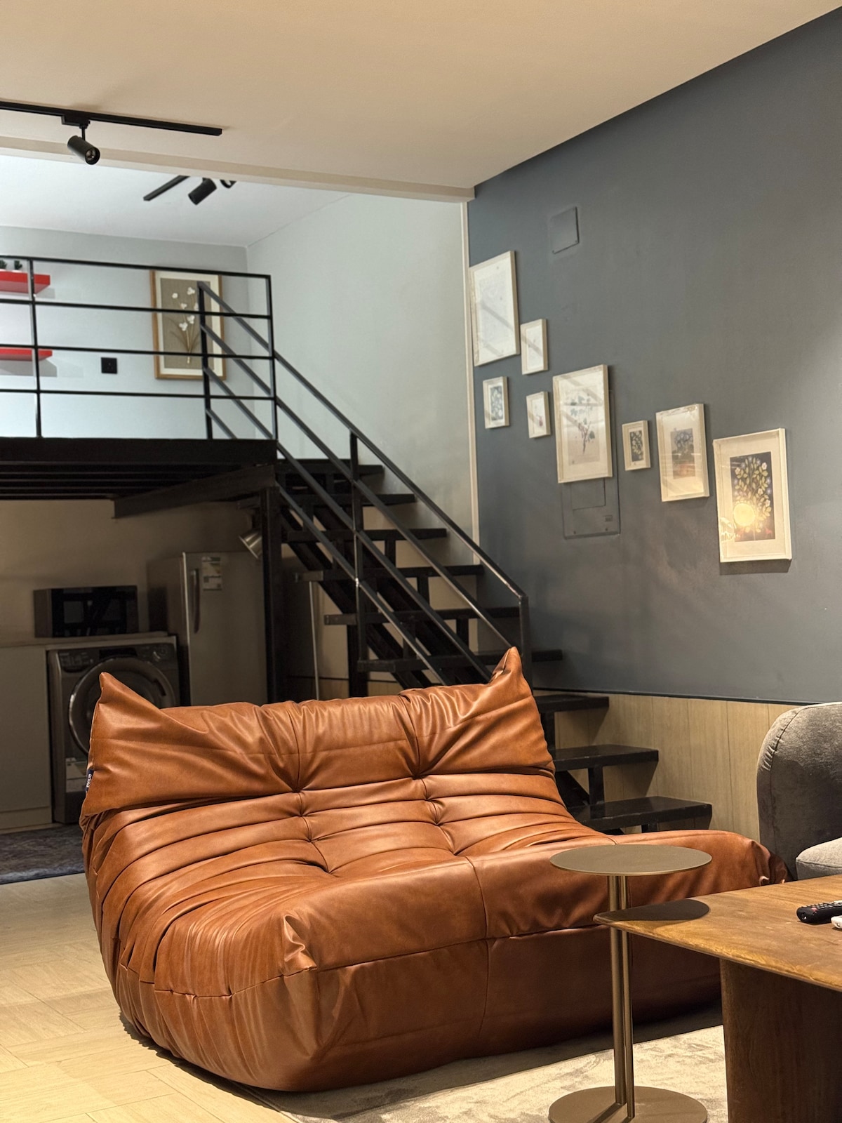 A quiet studio with self-check-in, Italian design, furniture from IKEA, Home Center, and a Master bed, and its release, And a multi-type coffee machine corner, And water, And the kettle, And Shay, And a café with a caustic table, and a washing machine, and a clothes dryer, and Microwave, And the oven, and cooking utensils, and a wardrobe; And a 65-inch smart screen, and Netflix, and a very cold split air conditioner, and headphones, a refrigerator and a small freezer in it. And the clever Frankish chair, Hair dryer; shampoo and soap, And Selber Hotel, And toothbrush and hotel paste, and hotel towels,