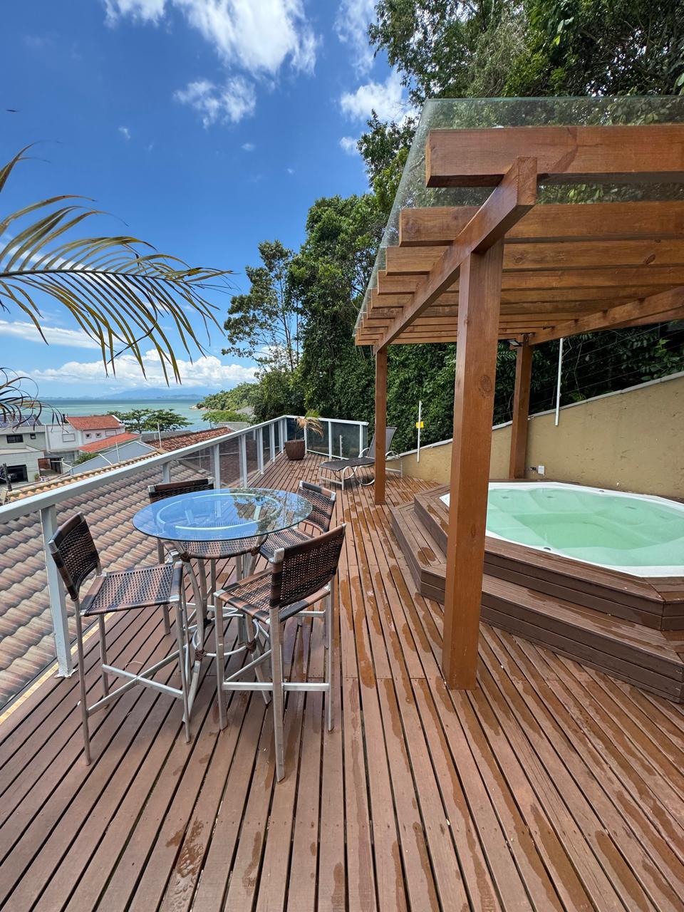 Excellent house with direct access to the beach! There are 4 bedrooms, 3 suites, balcony and barbecue area connected to the garden and pool. Located in a condominium with only 3 residences,in a quiet street, with easy access to the best beaches of the North of the Island! Five minutes from Jurerê. Exclusive condominium with homestay. Pool and large lawn are shared only by the three residences. Cozy,with Mediterranean references, here you can relax with standing on the sand!