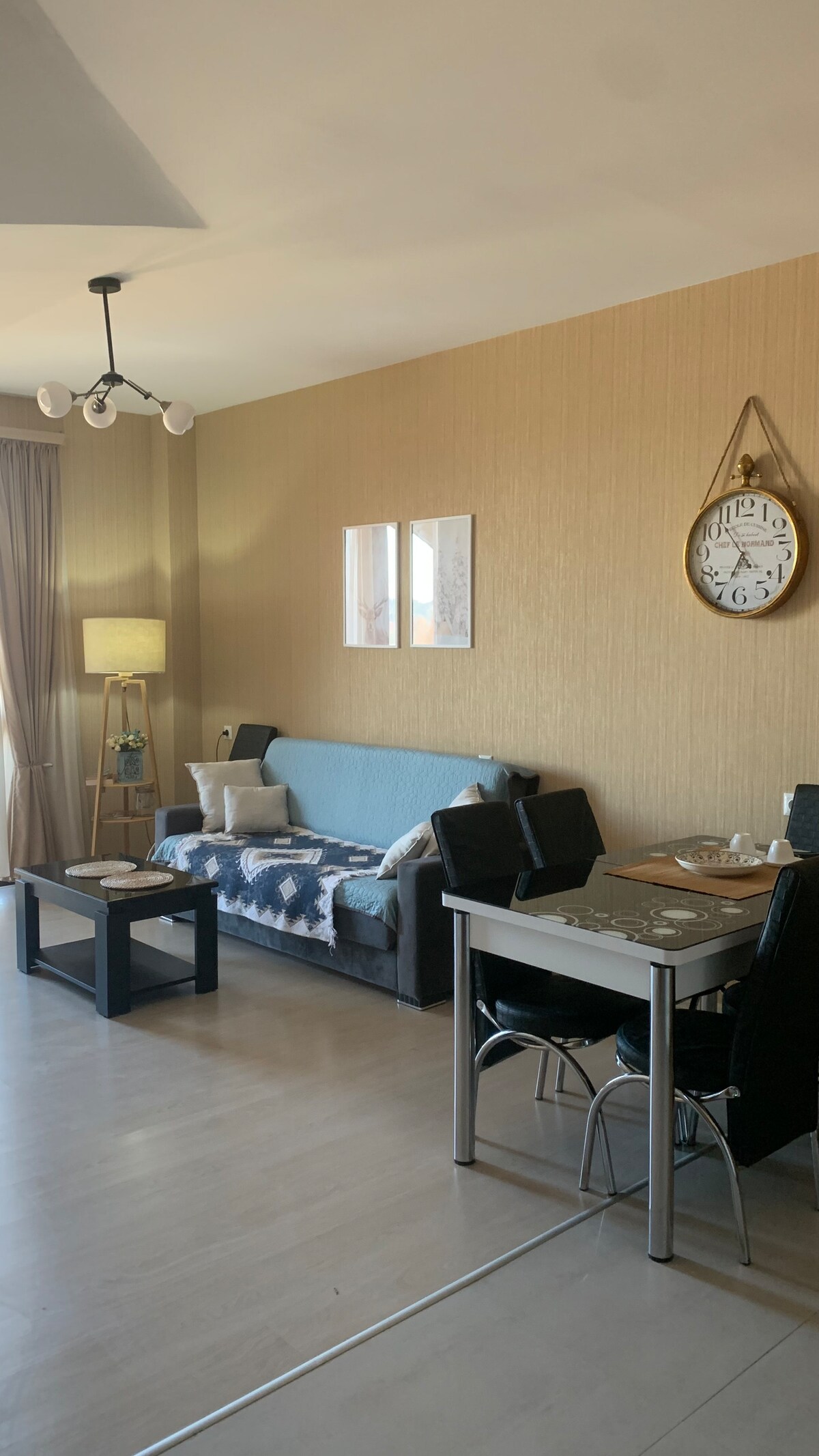 Come and relax in this calm, stylish space at the famous ski resort Bakuriani. The newly renovated studio offers view of the pine forest and mountains and includes a bedroom with a queen bed and sleeping sofa, a kitchen with tableware, refrigerator and a microwave, bathroom and balcony. There are plenty outdoor activities like skiing and hiking. One of the best skiing routes Didvelli - in just 300 meters. A pool and sauna (separately charged) are available at the residential complex Orbi Palace