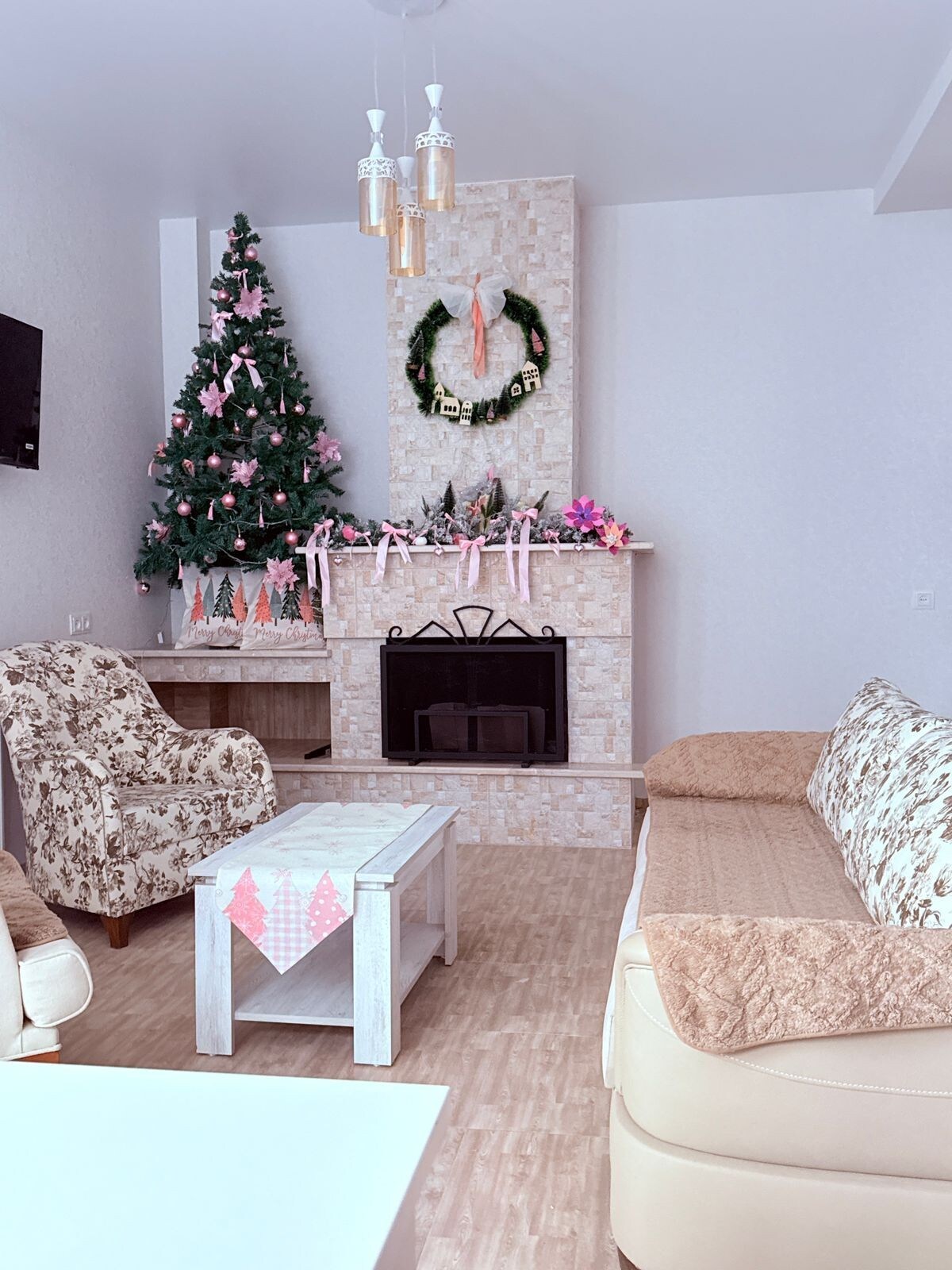 There is a beautiful view from the balcony.The apartment offers you indoor spacious hall which is warm and beautifully decorated with Christmas decorations during winter. There is a small caffe with plenty of sofas and children zone . While in summer you can enjoy having time in an outdoor patio. Free indoor parking is available .The nearest ski slope “Kokhta” is 600m away where you can walk or taking public transport directly from the apartment. Grocery stores and restaurants are within 300 m.