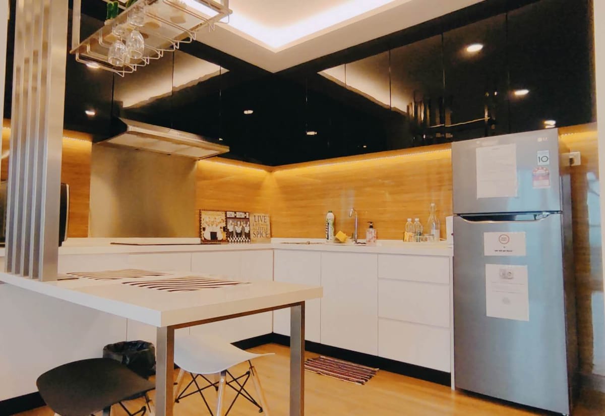 Our Grand Loft is packed with all sorts of amenities and facilities that you'll ever need! We are furnished with premium quality furnitures , entertainment unit (Karaoke) and exquisite finishing that gives not only more value but also your experience staying here. We are located just 15 minutes away from the CBD, 5 stops away from Bukit Bintang (Pavillion) & 6 stops away from KLCC by train. We are strategically located with a 4 minutes covered walk through the mall to the MRT station at lv 1