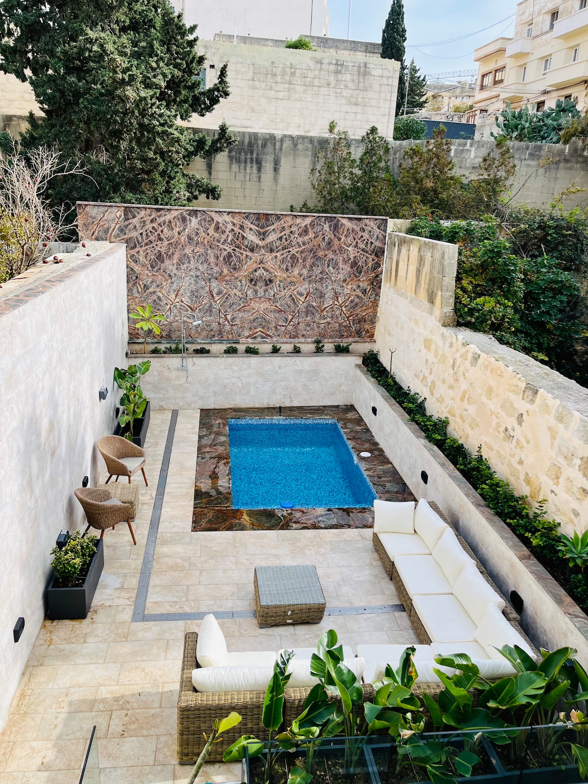 This unique central house , has been recently renovated and furnished to the highest standards. It is designed to accommodate groups up to 9 guests who will enjoy facilities such as fully equipped kitchen, 4 en-suite bedrooms, lounge room , private swimming pool, central location with direct access to the beach of Balluta Bay.