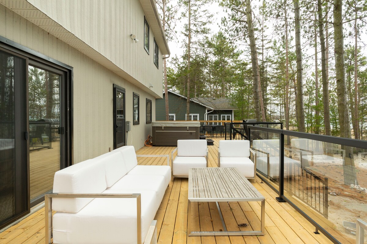 Come and stay at our beautifully renovated *all-season* beachfront cottage and enjoy a breathtaking panoramic view of Georgian Bay! You'll discover the cottage sitting atop a sand dune, right on one of the most stunning freshwater beaches in the world. This rare location hosts a private covered deck hovering over the white sand, in a beach house closer to the bay than anywhere else around! Summer guests also enjoy use of a heated salt water pool and large resort deck created by Paul Lafrance.