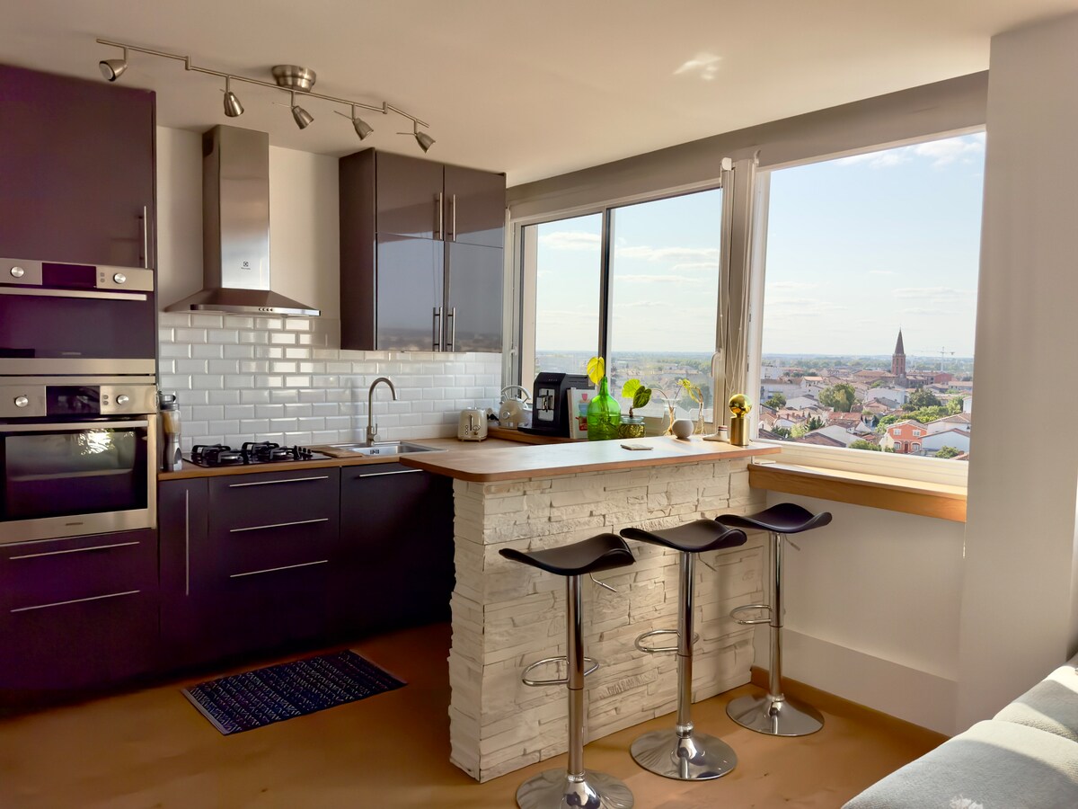 This beautiful, bright, fully renovated 2-room apartment with great comfort and an oriental touch, will welcome you for your vacations or business trips. With an unobstructed view of the heart of Balma, a nice balcony, on the third and top floor with elevator, you will enjoy a very quiet environment while being very close to shops, and 3 minutes from the ring road access. A few steps away you will find buses that will take you to the metro to central Toulouse. Welcome!